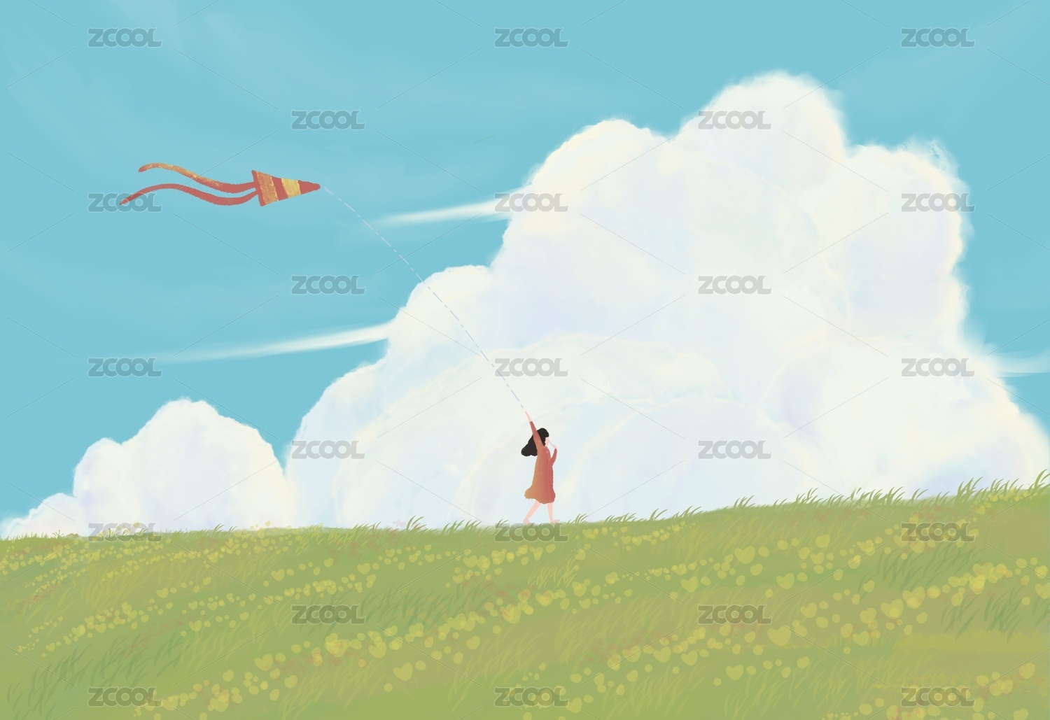 宮崎駿風(fēng)追風(fēng)的白衣少女