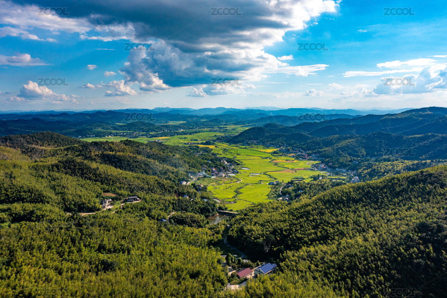 中國廣西南寧鄉(xiāng)村綠色山林藍(lán)天白云航拍風(fēng)光
