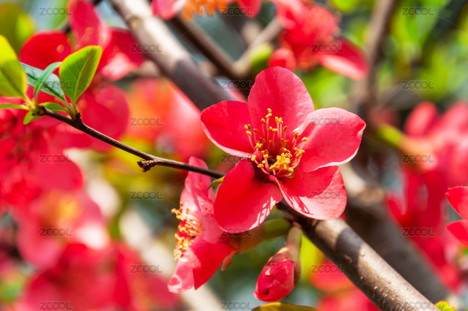 湖南寧鄉(xiāng)春天市民公園里盛開的紅色海棠花