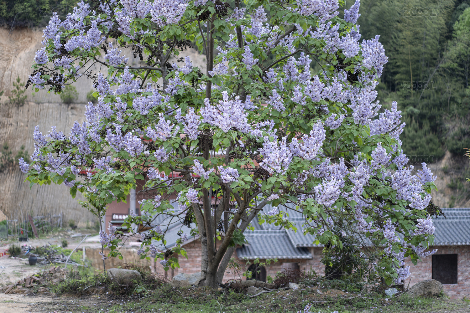 一株開滿紫色花朵的泡桐樹,中國連城