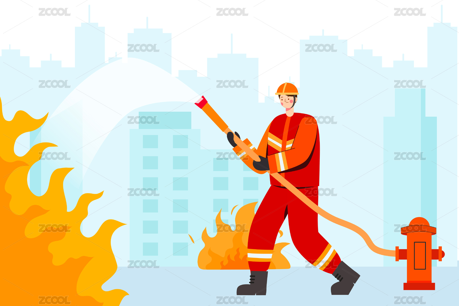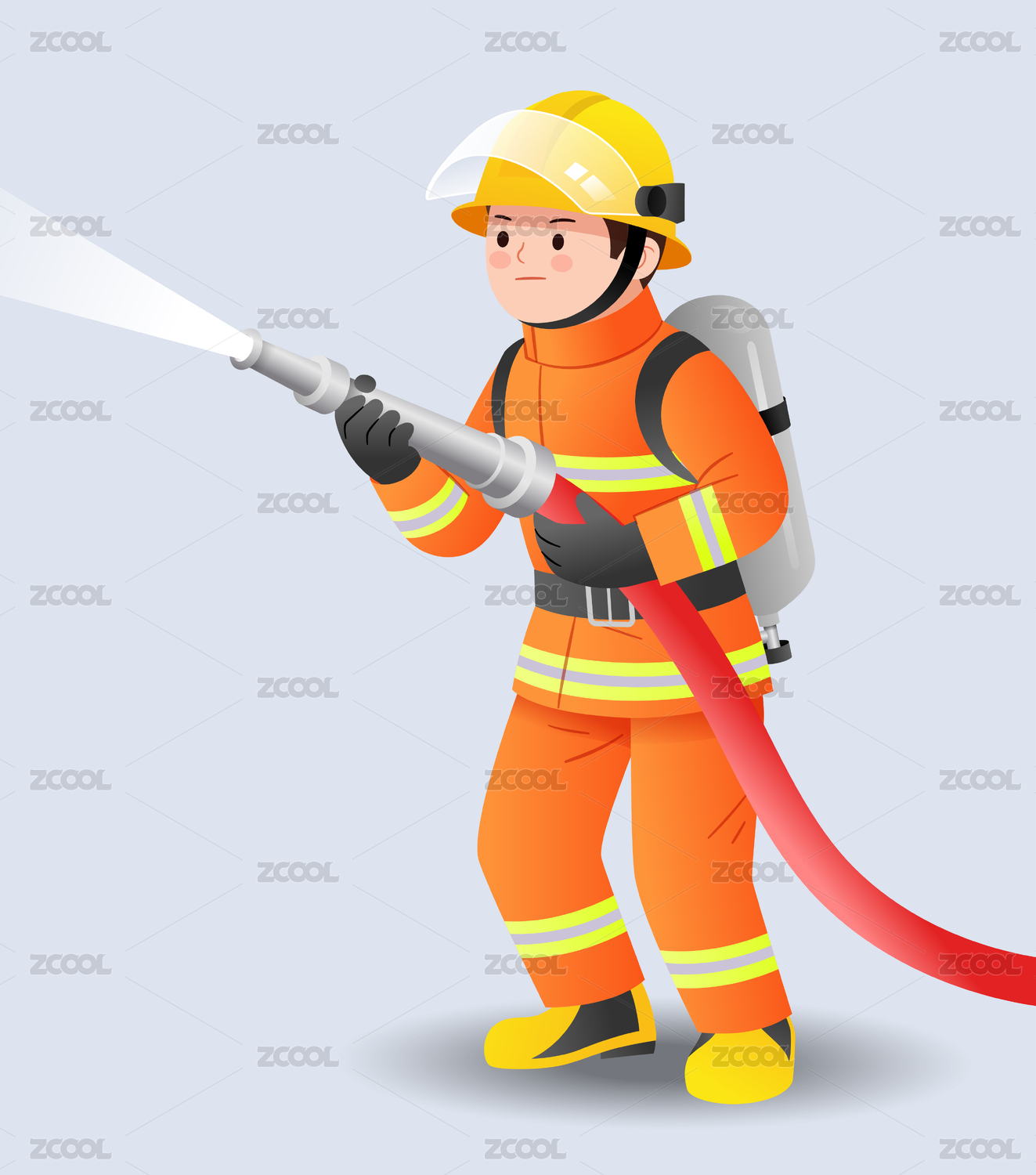 一個拿著高壓水槍的消防員插畫
