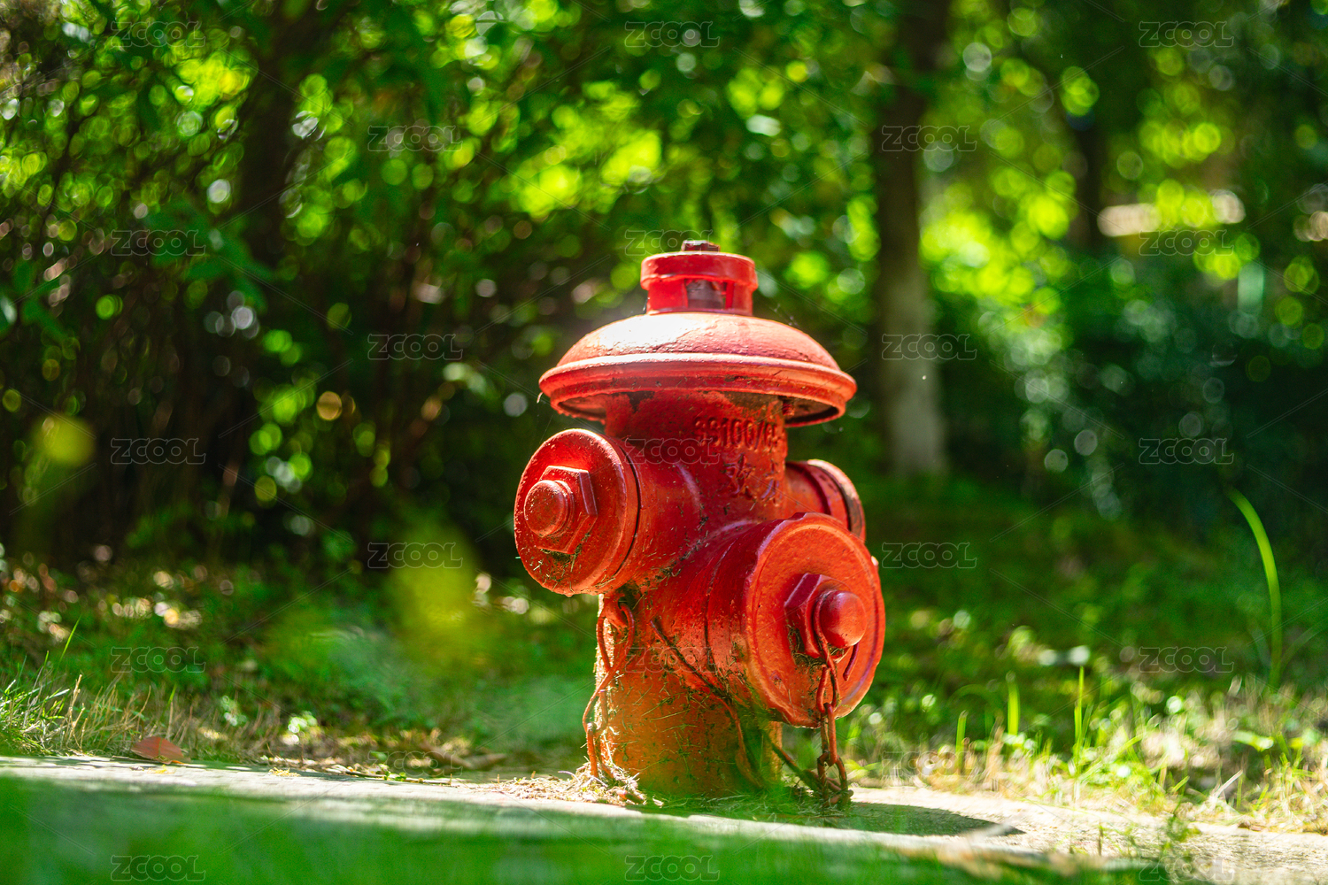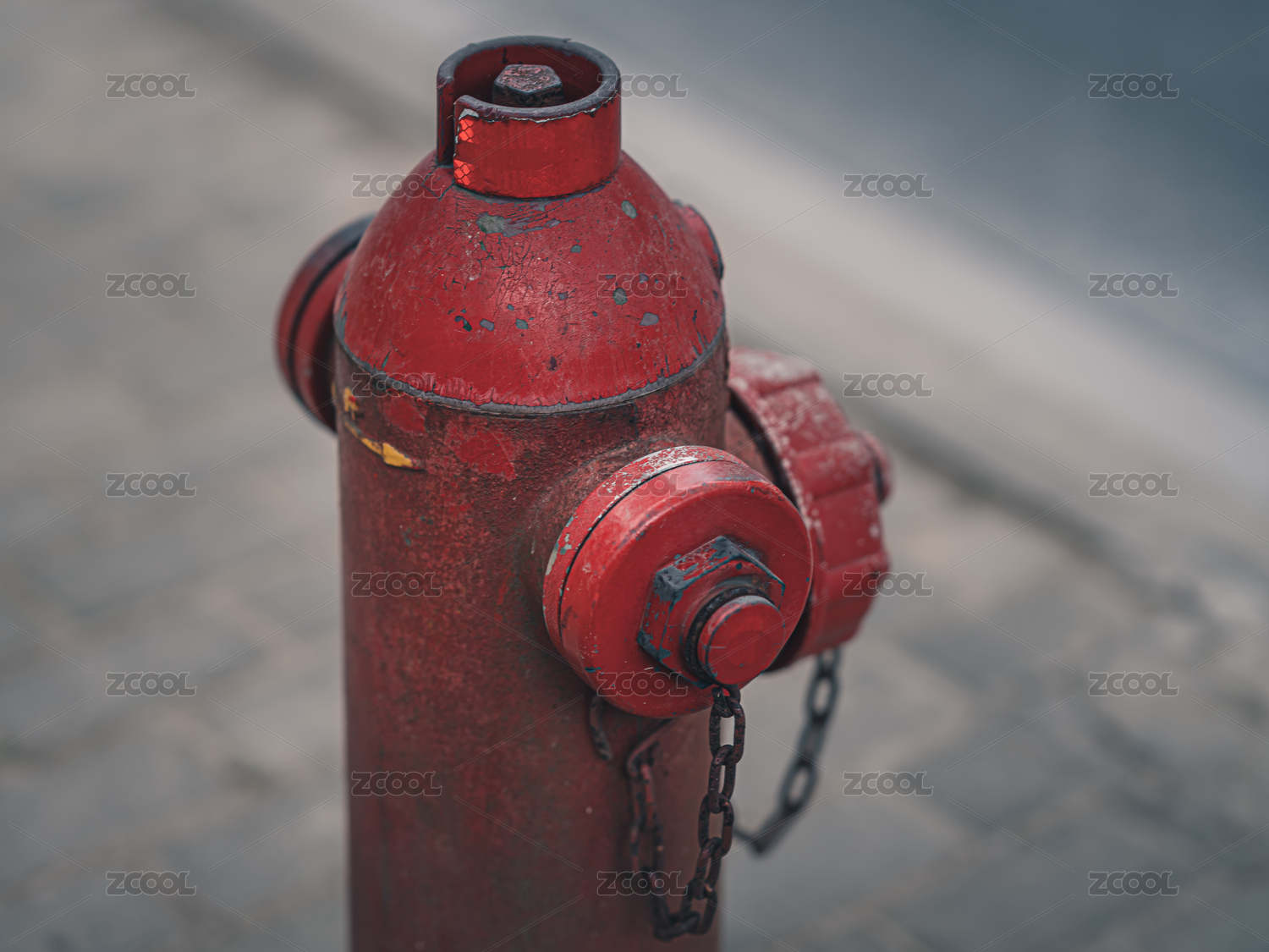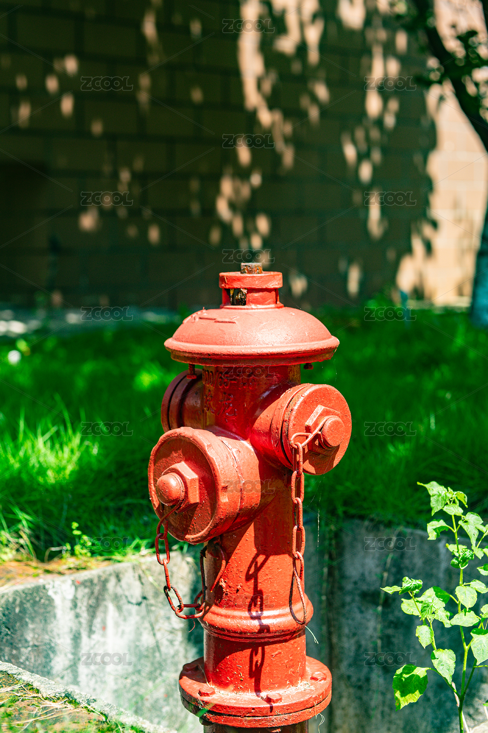 城市里馬路邊的紅色消防栓