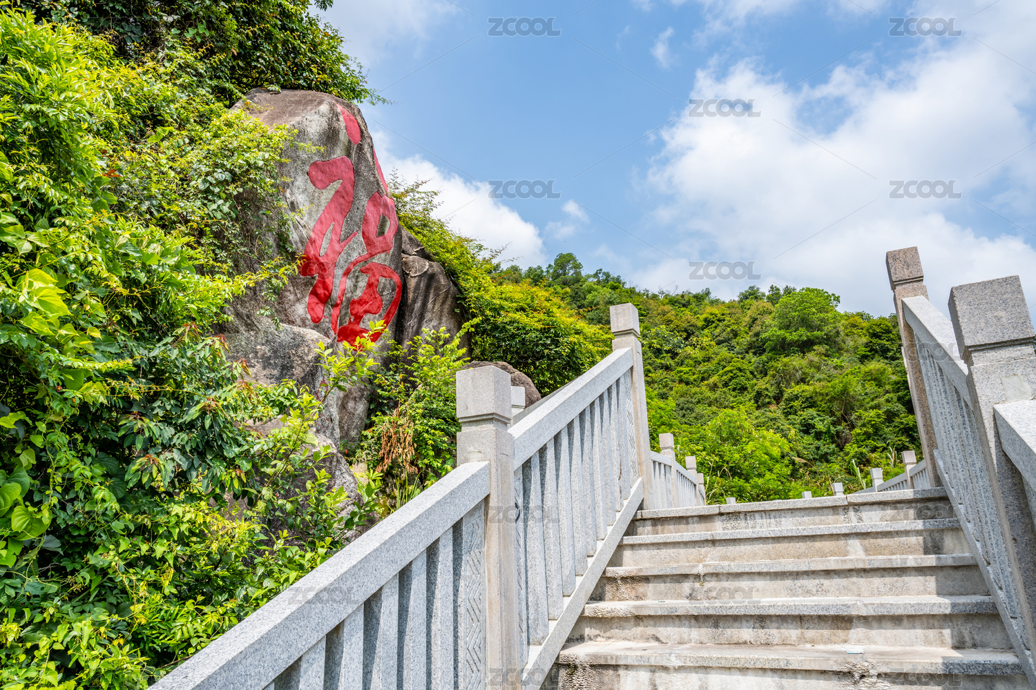 中國福建省武夷山,水簾洞景區(qū)瑞泉巖下的登山道