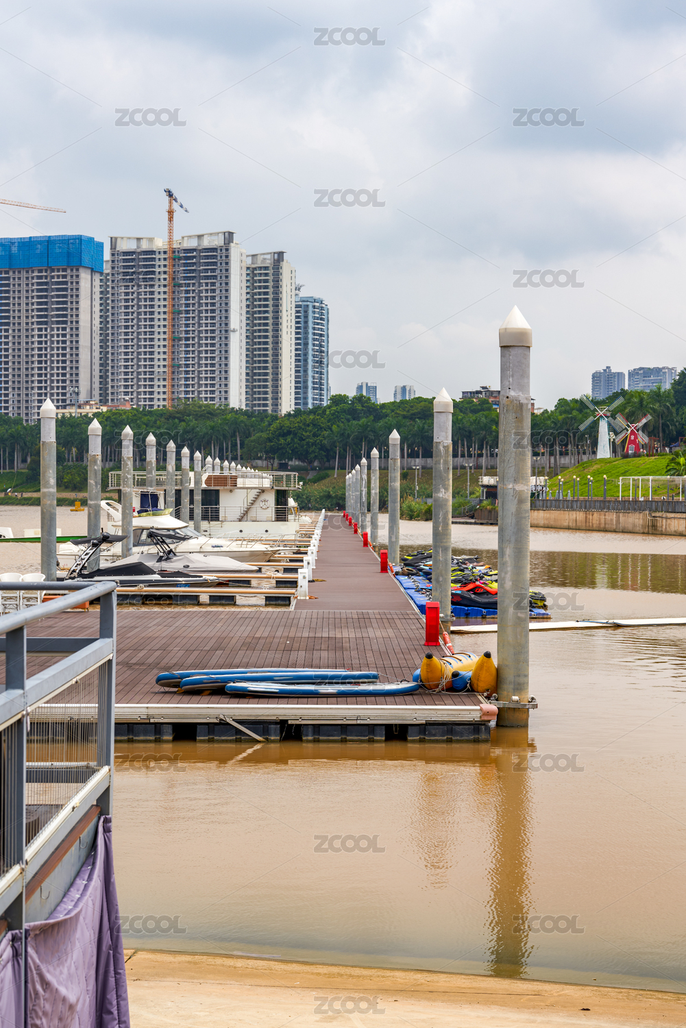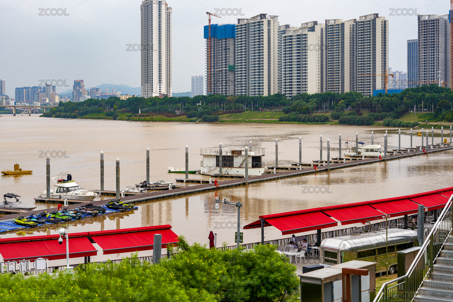 城市江邊的游艇碼頭俱樂部