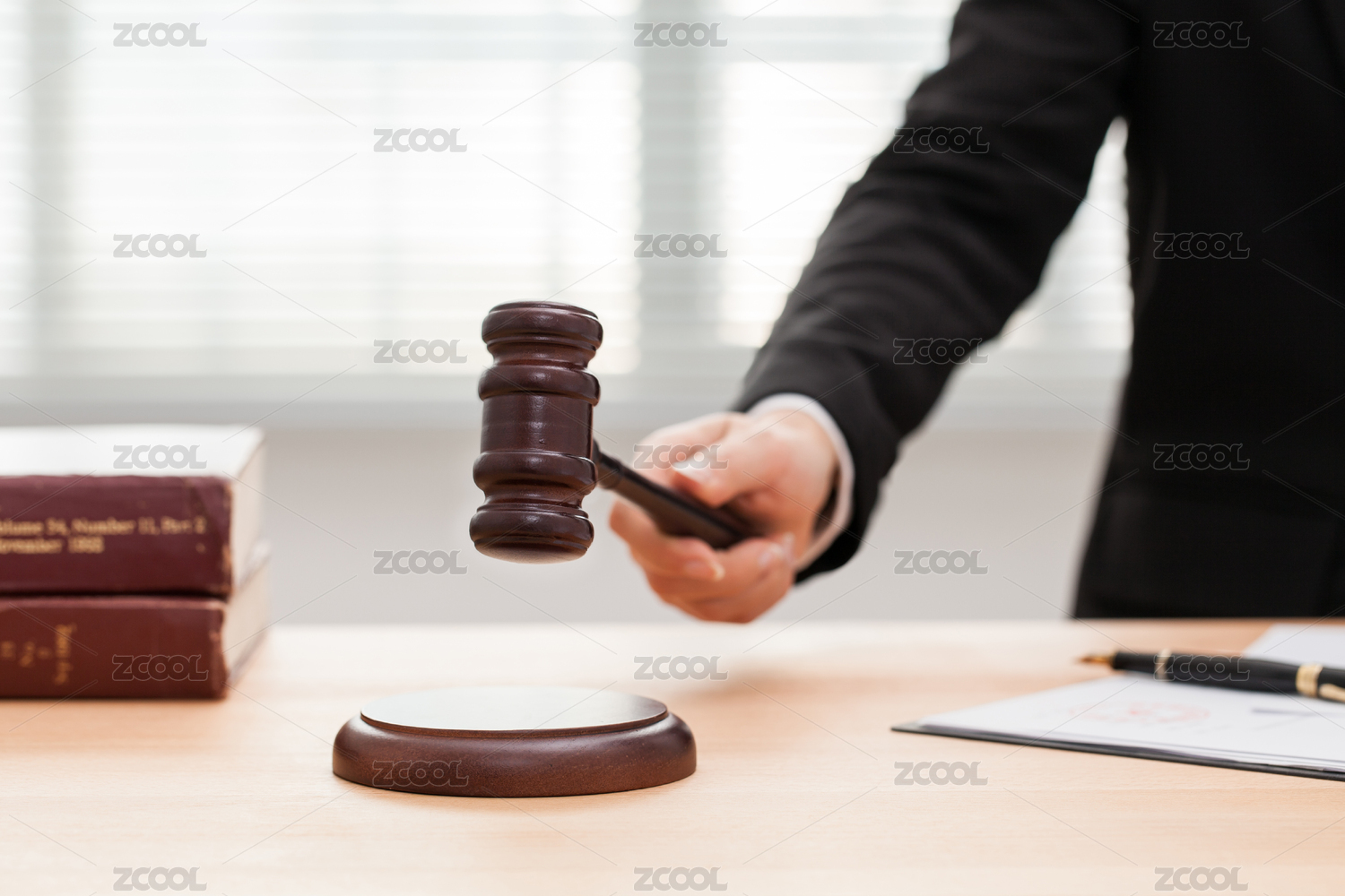 明亮室內(nèi)桌面上手持法槌的特寫圖