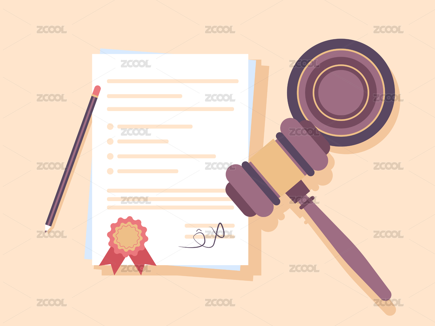 法律錘和審判書擺在一起矢量插畫