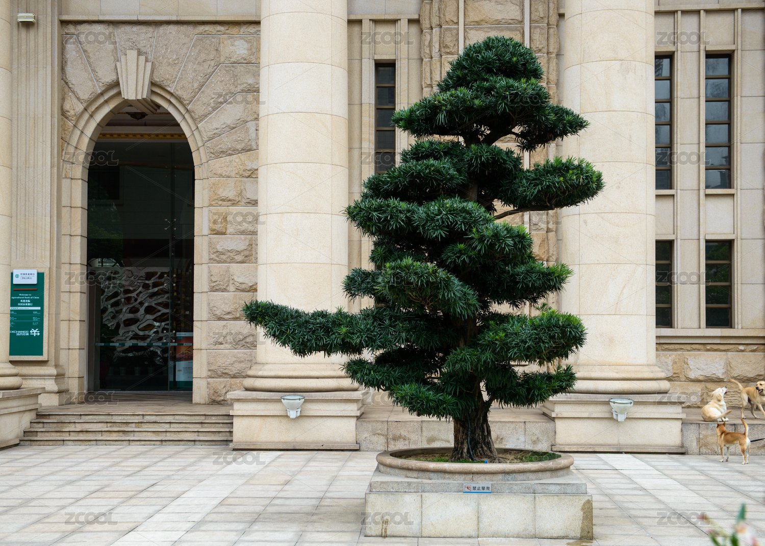 中國(guó)盆景藝術(shù),金融公司門(mén)口的風(fēng)水樹(shù)羅漢松