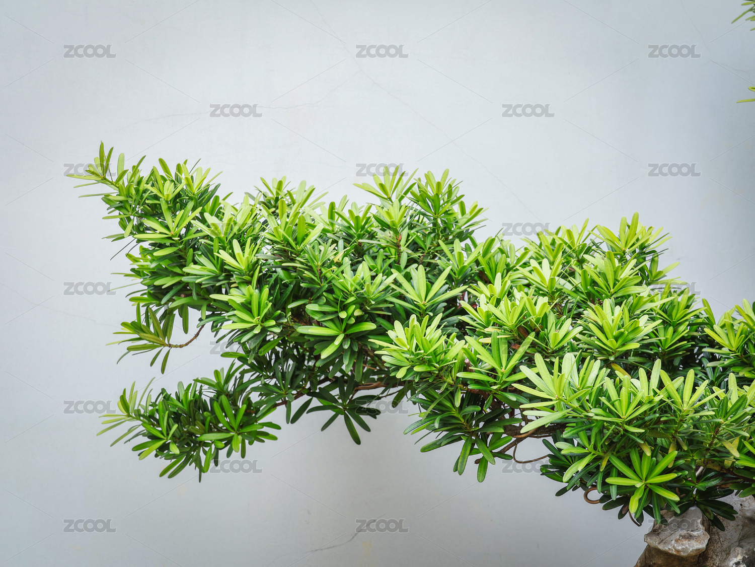綠色背景的羅漢松盆景