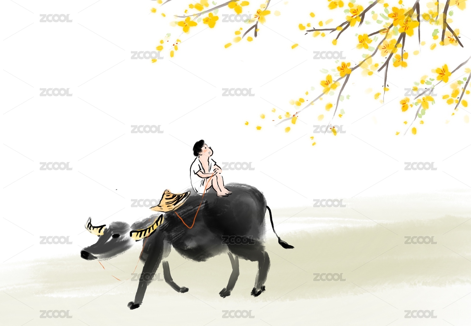 牛年立春節(jié)氣插畫迎春花
