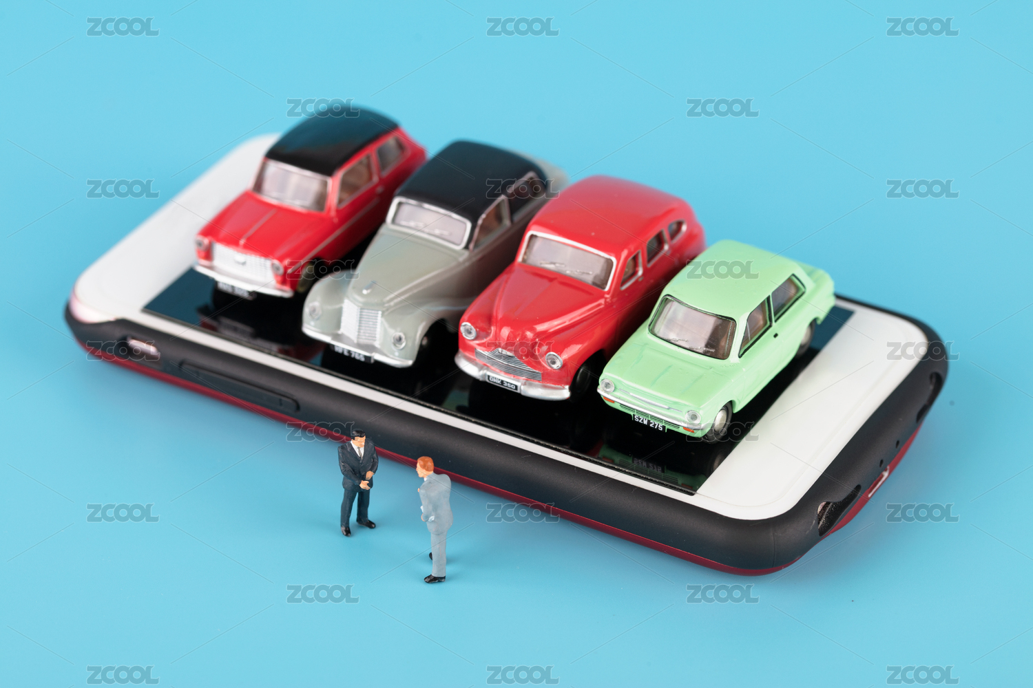 兩位商人在談?wù)撌謾C(jī)上的小汽車