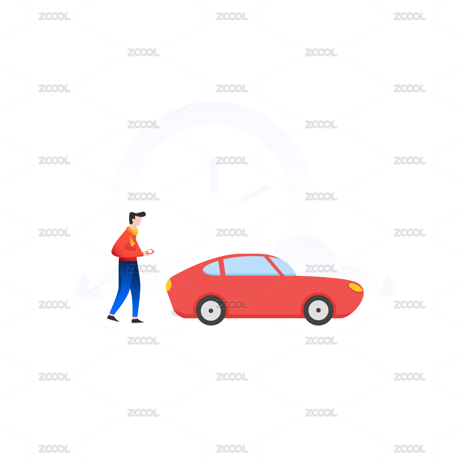 卡通2.5D汽車維修保養(yǎng)活動(dòng)充電矢量背景插畫