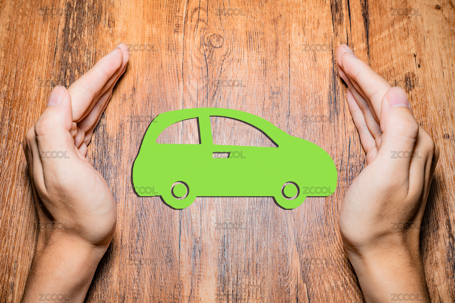 手呵護(hù)著小汽車車輛出行安全保險(xiǎn)概念