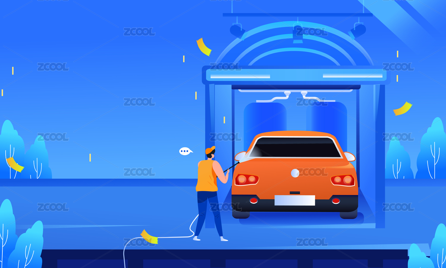 卡通汽車服務(wù)洗車促銷活動(dòng)矢量背景插畫