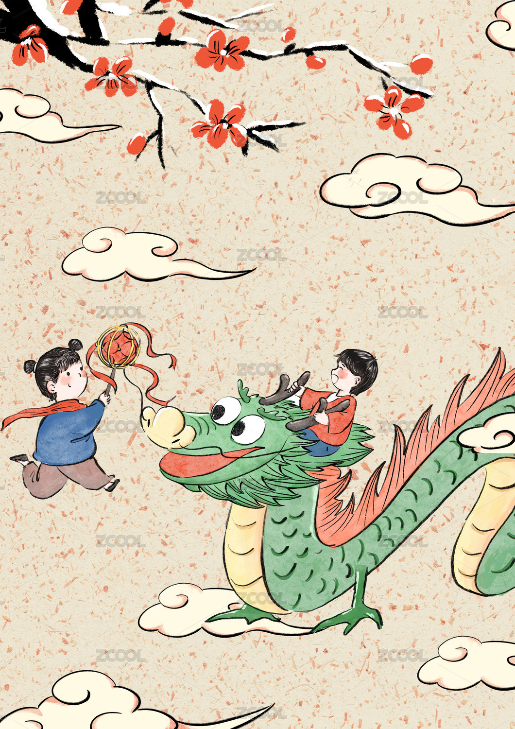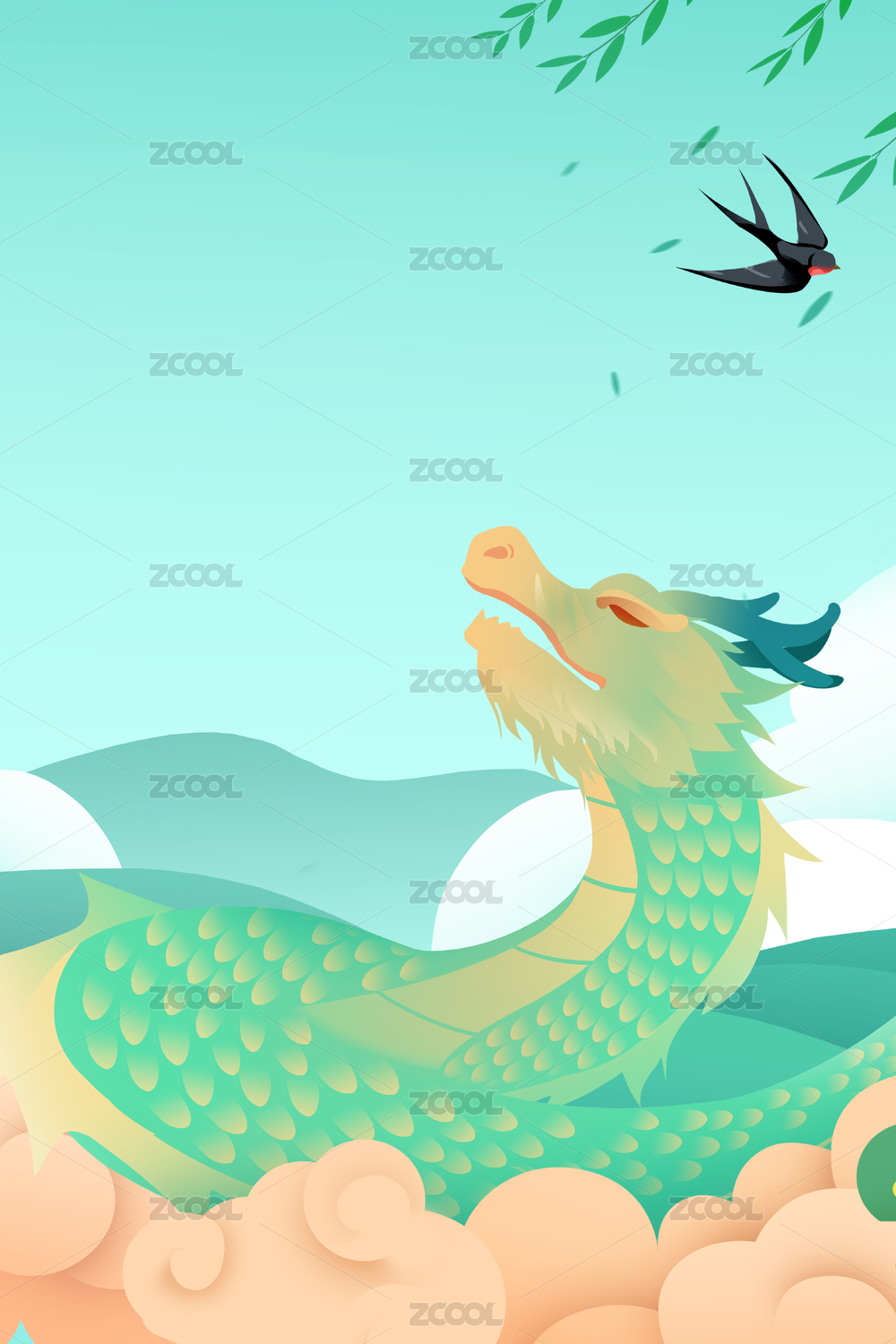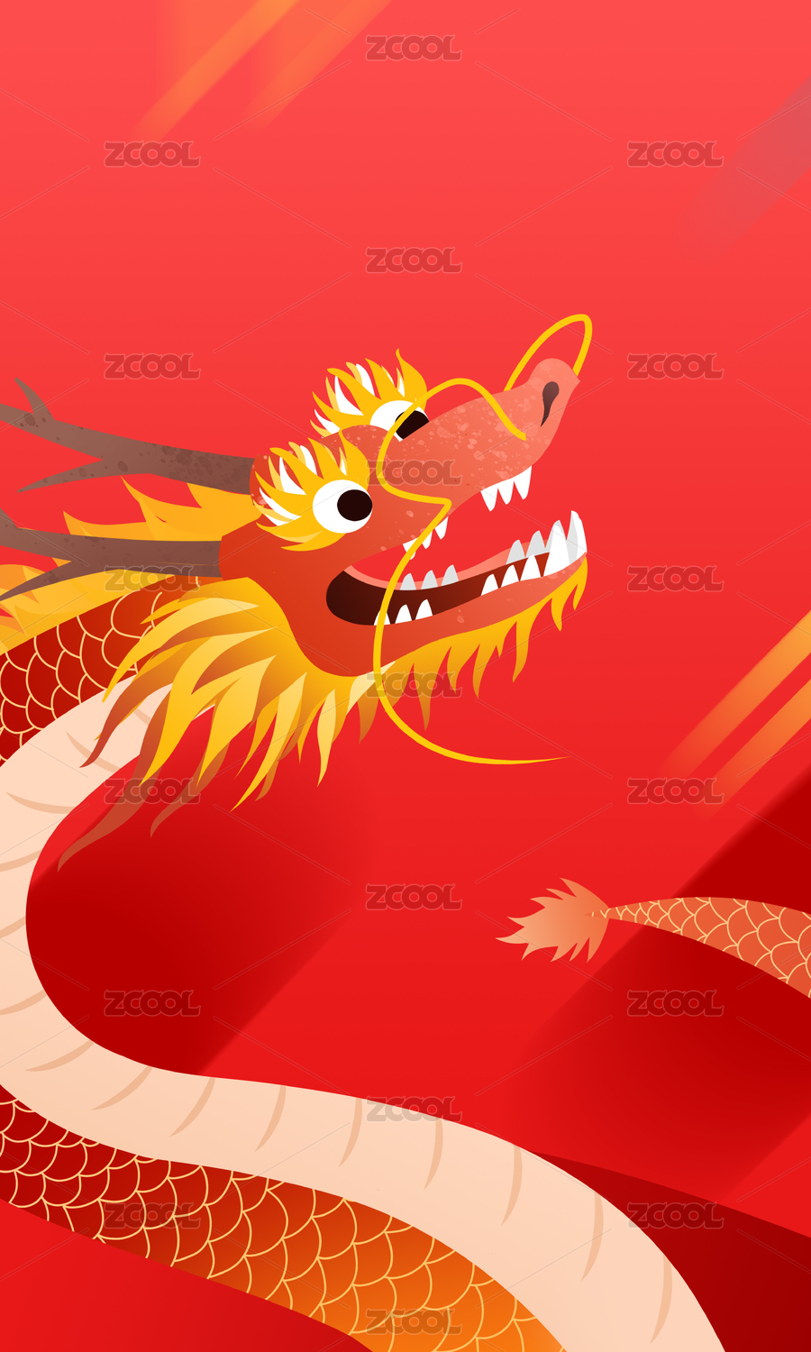 卡通手繪二月二龍?zhí)ь^中國龍插畫