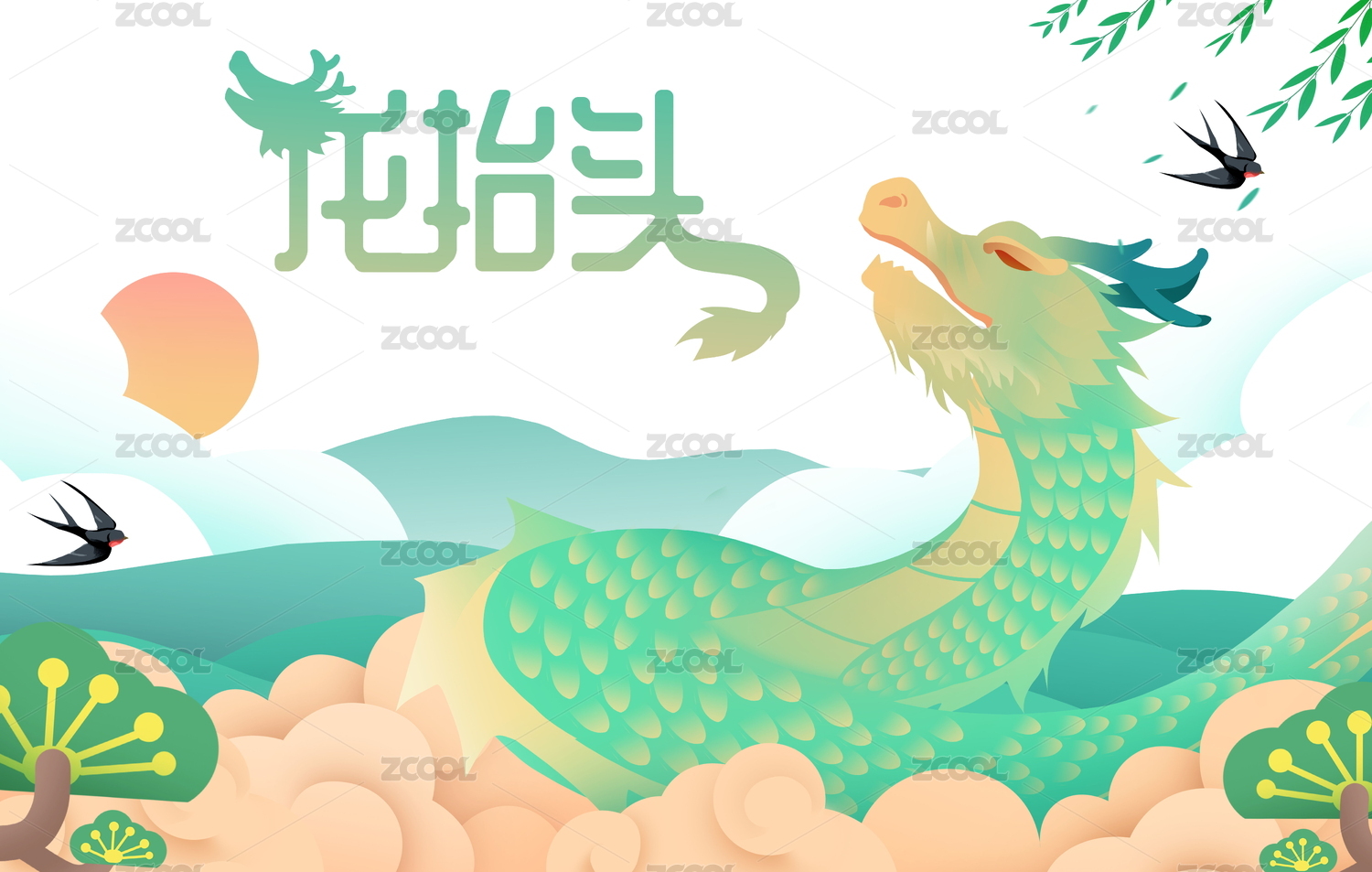 二月二龍?zhí)ь^卡通插畫