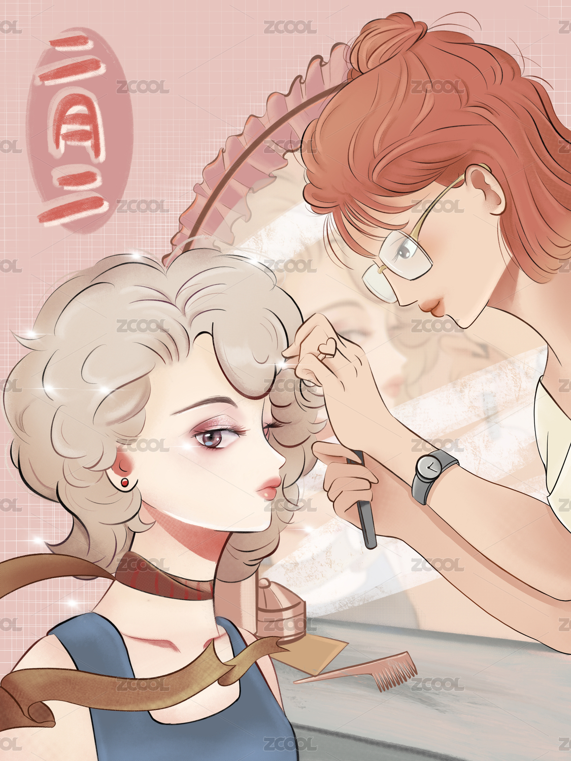 二月二龍?zhí)ь^剪頭發(fā)習(xí)俗矢量插畫