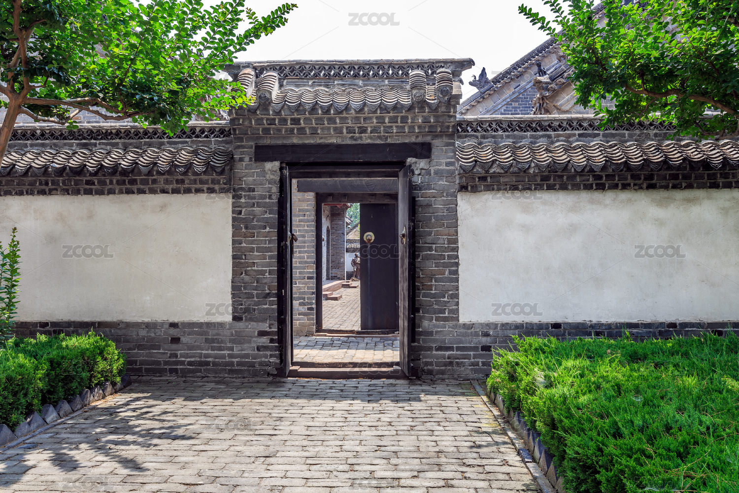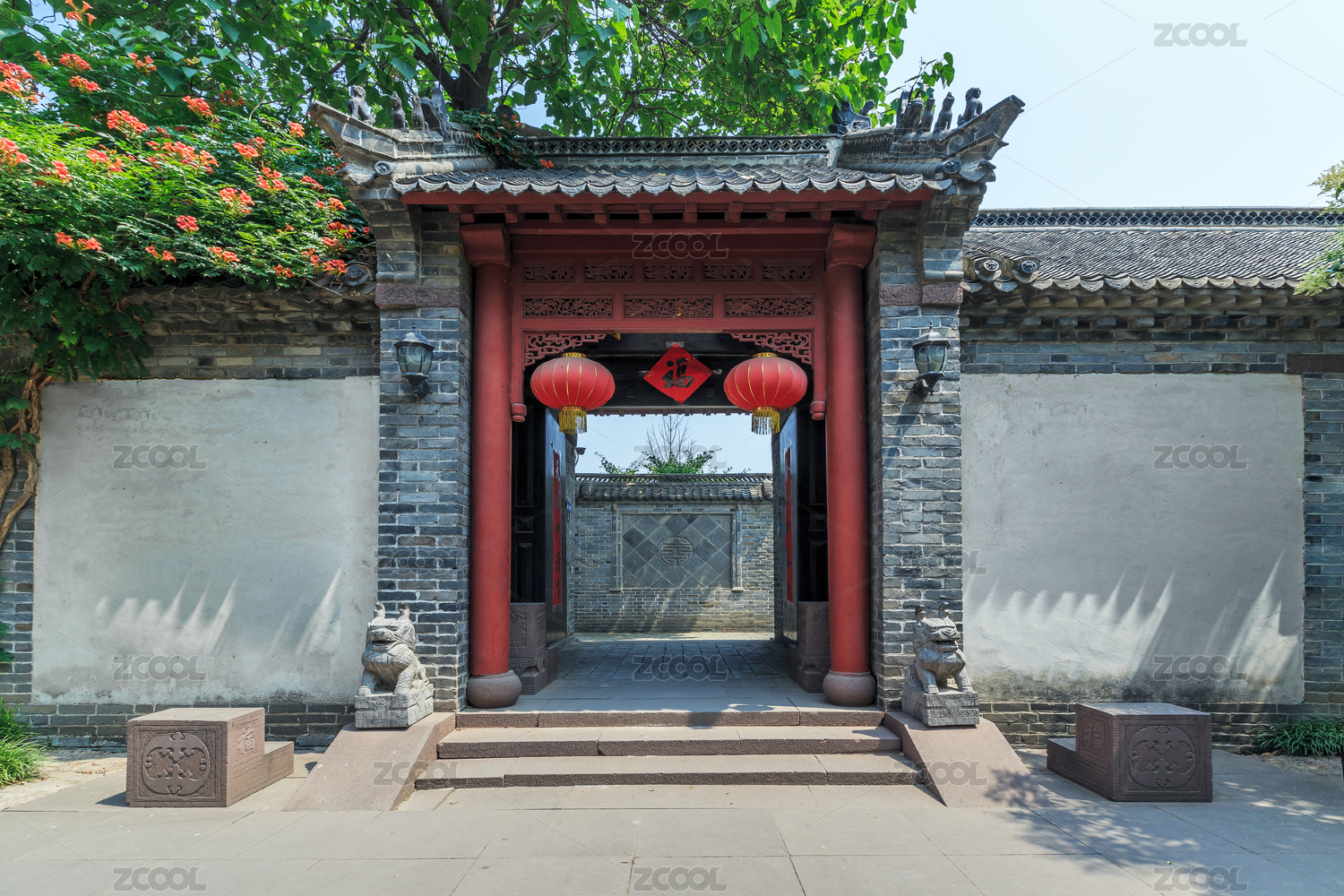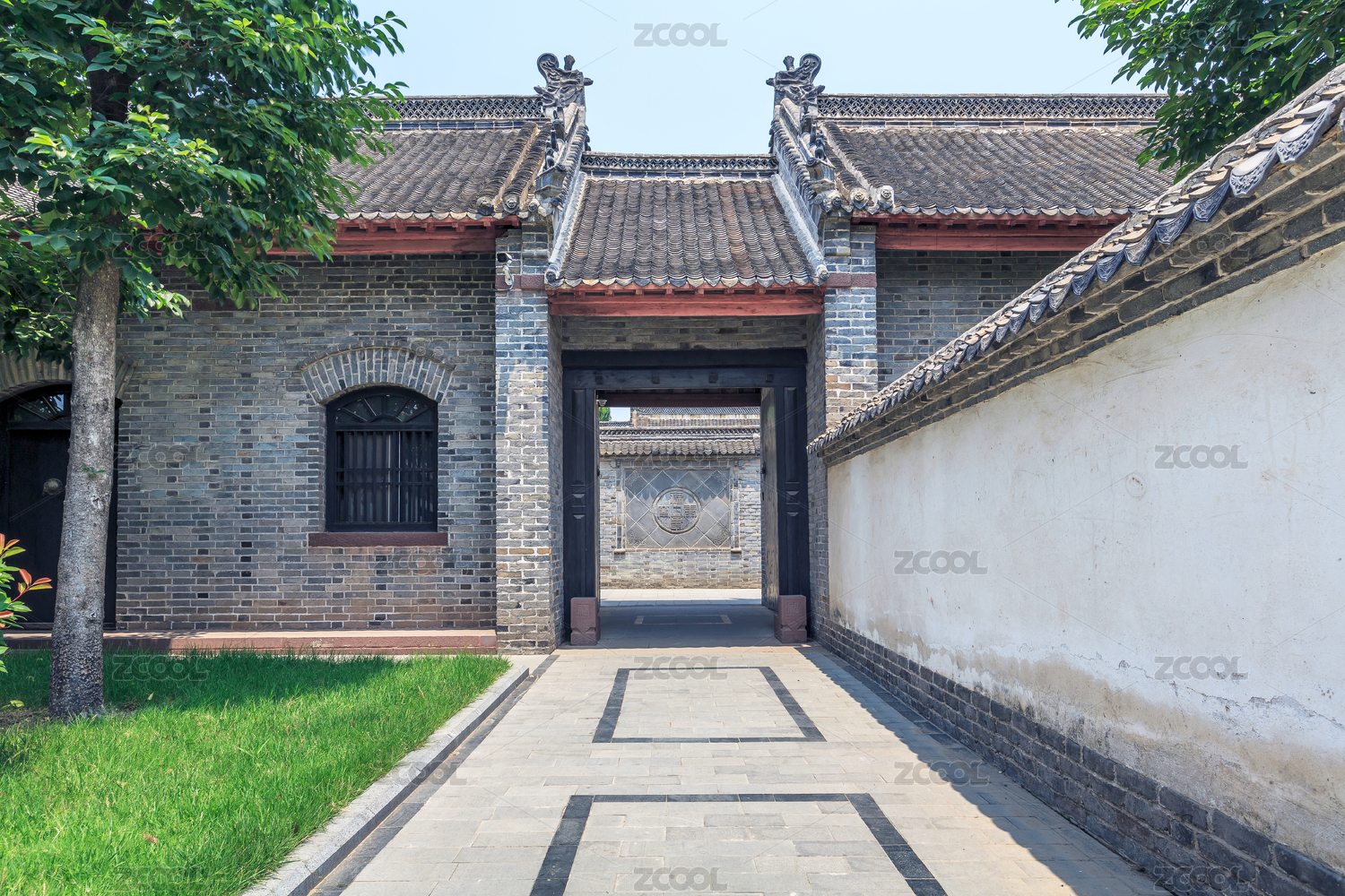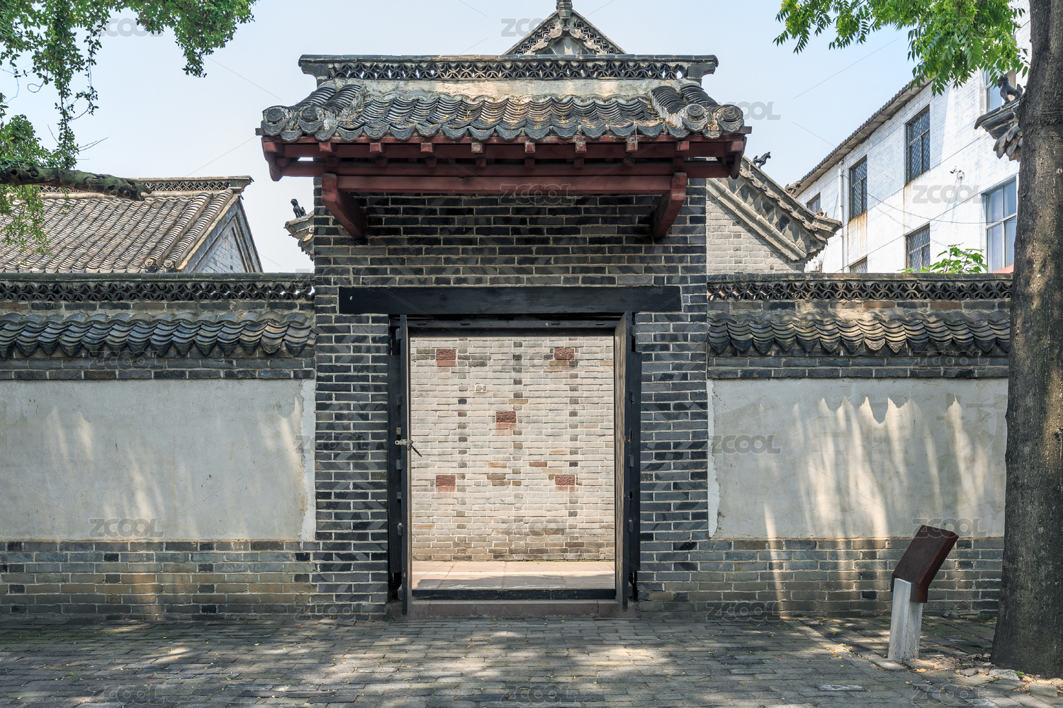 山東省政府和八路軍115師司令部舊址景區(qū)內(nèi)的古典園林門建筑,中國山東省臨沂市沂南縣大店鎮(zhèn)