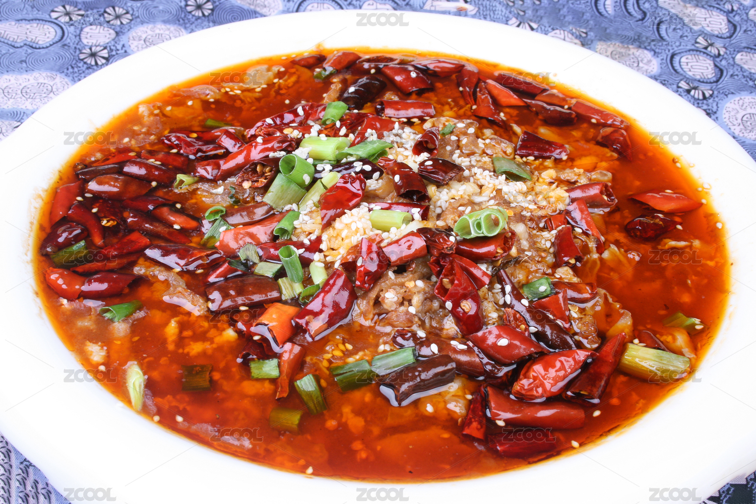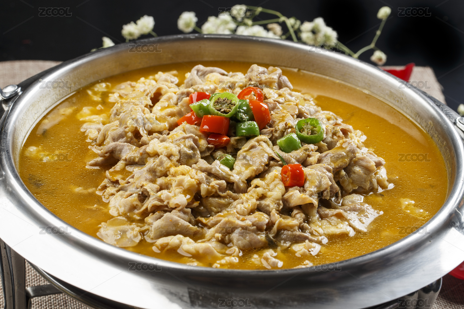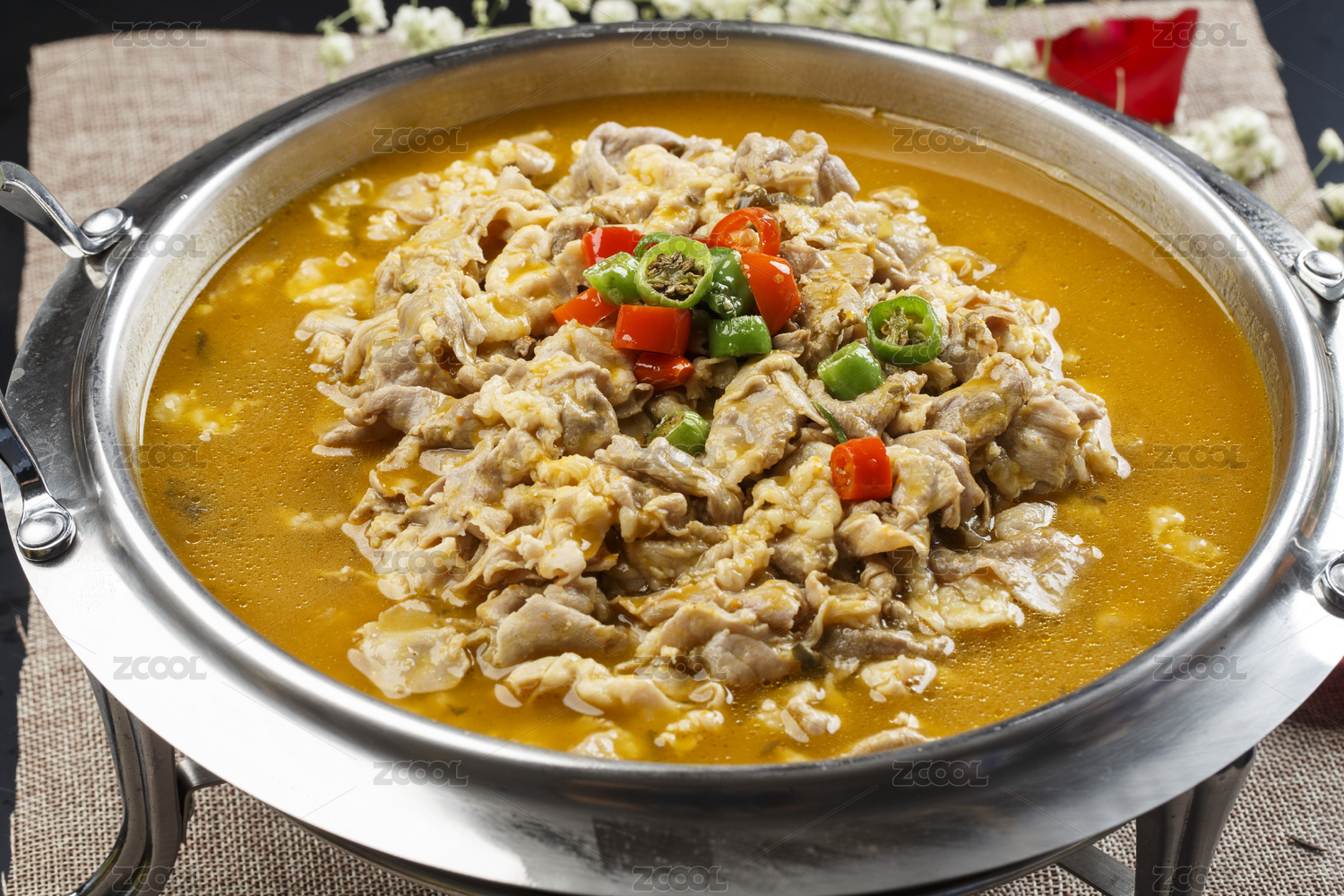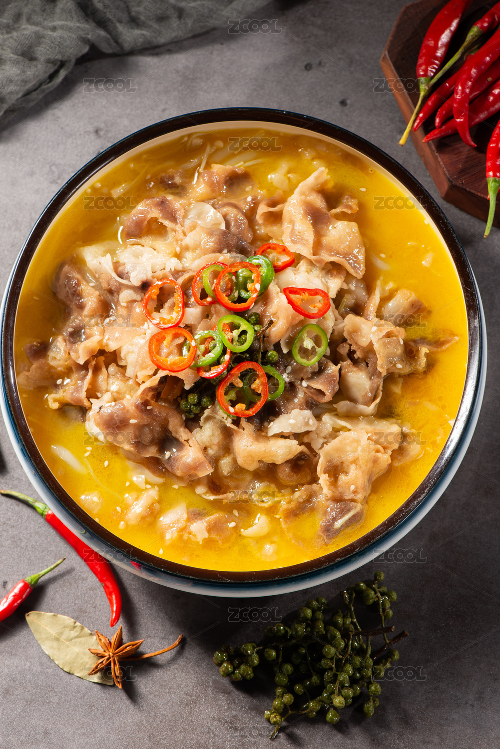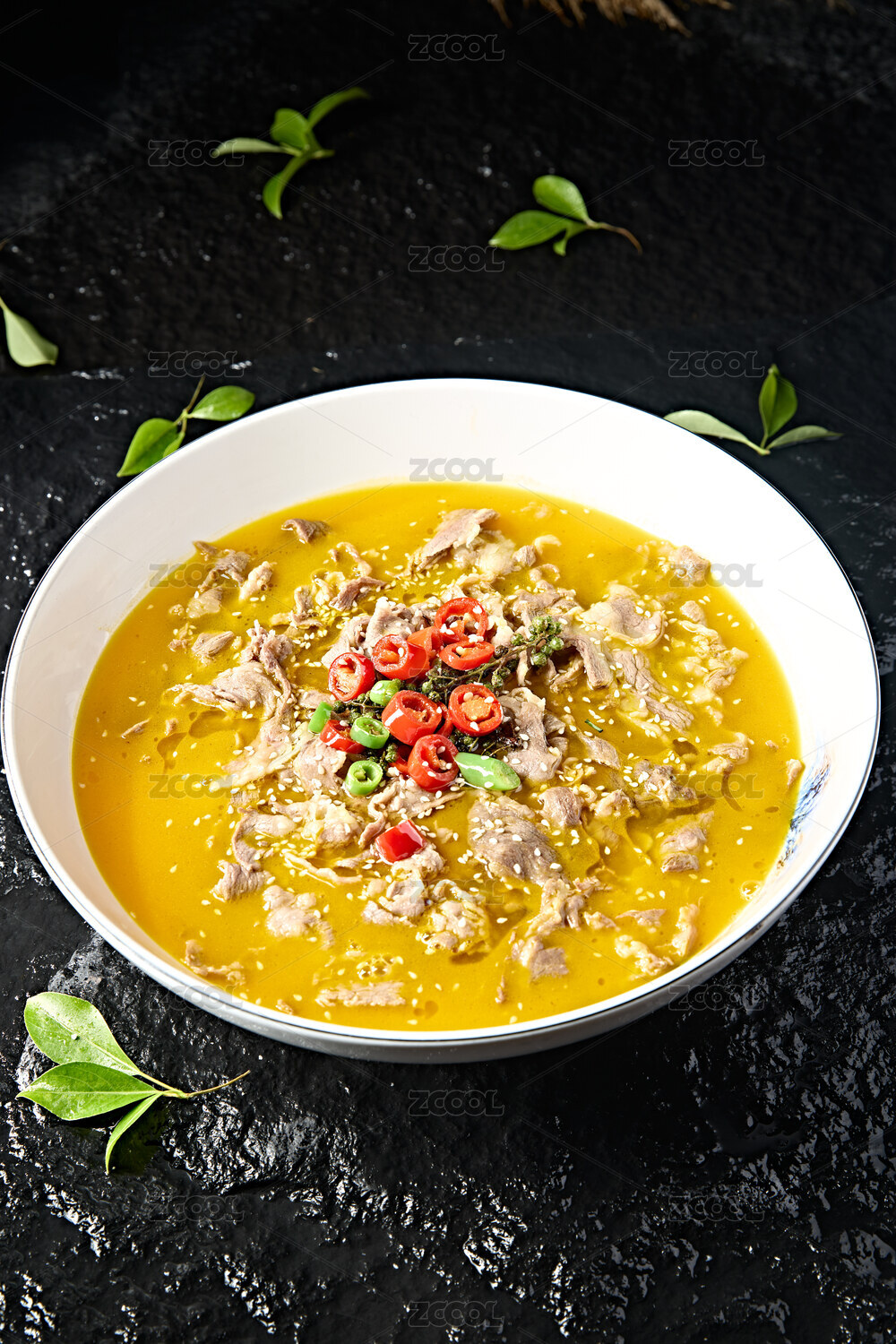 沒花瓷盤裝的酸湯肥羊蓋云吞