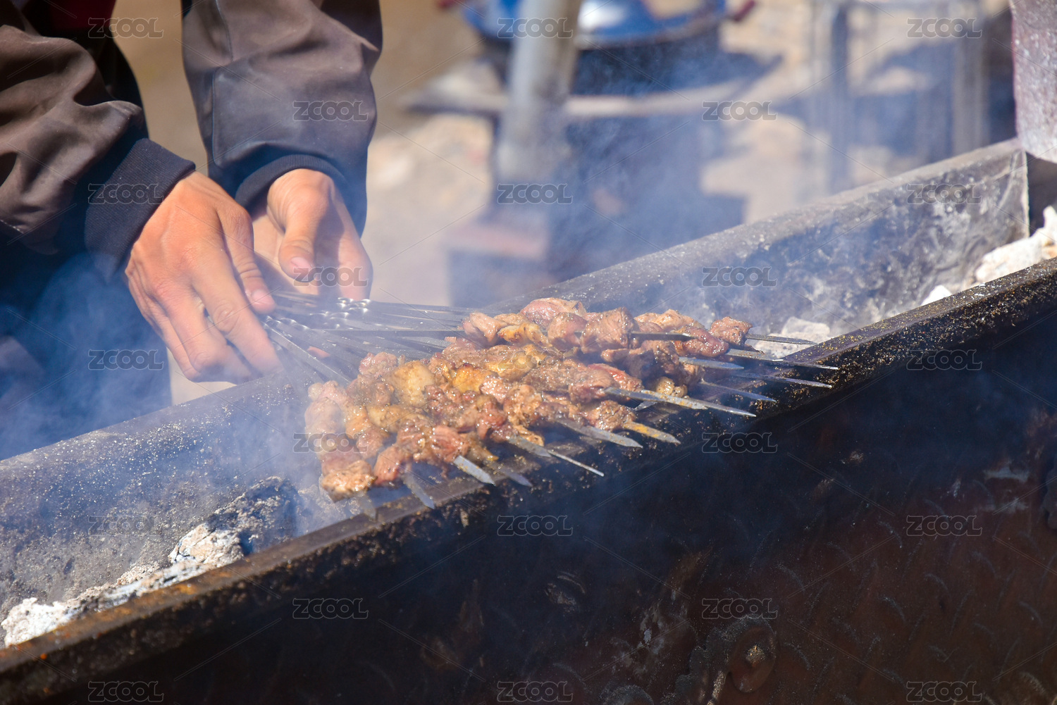 戶外手持烤串燒烤場景