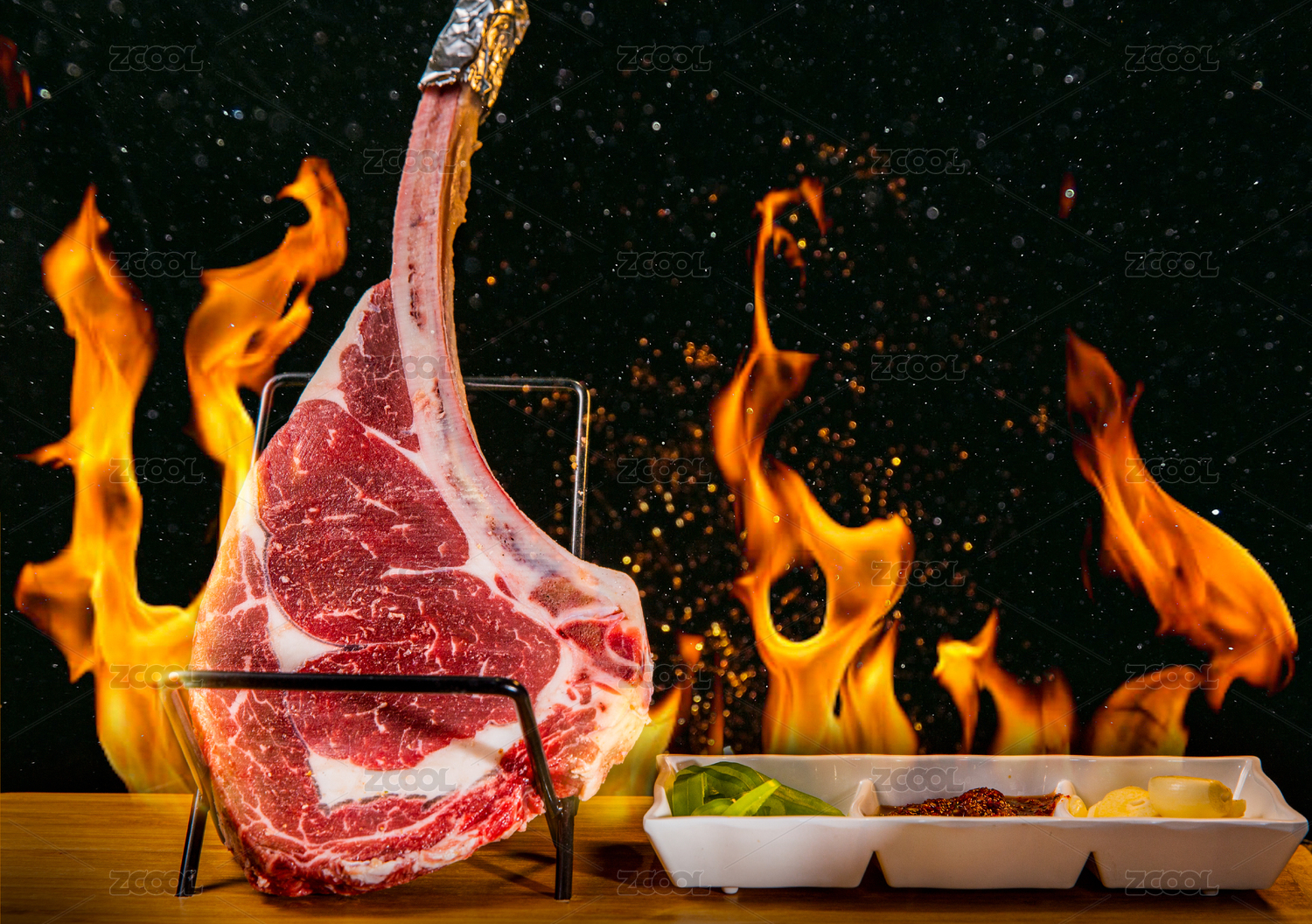 烤肉架上的刀斧牛排