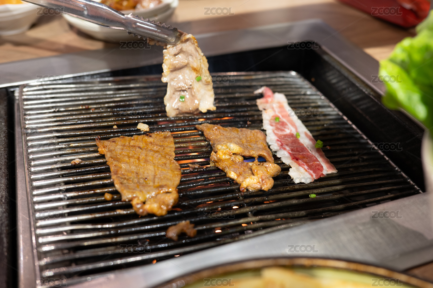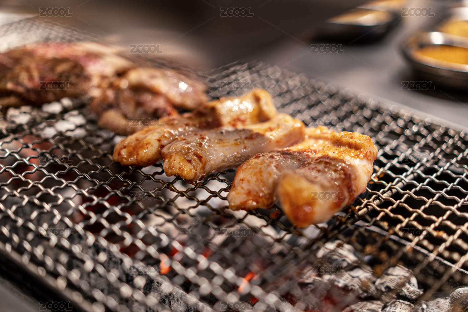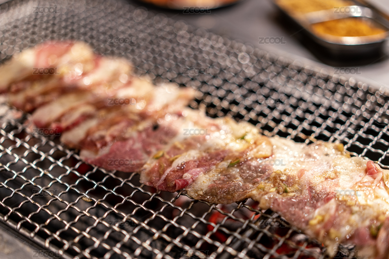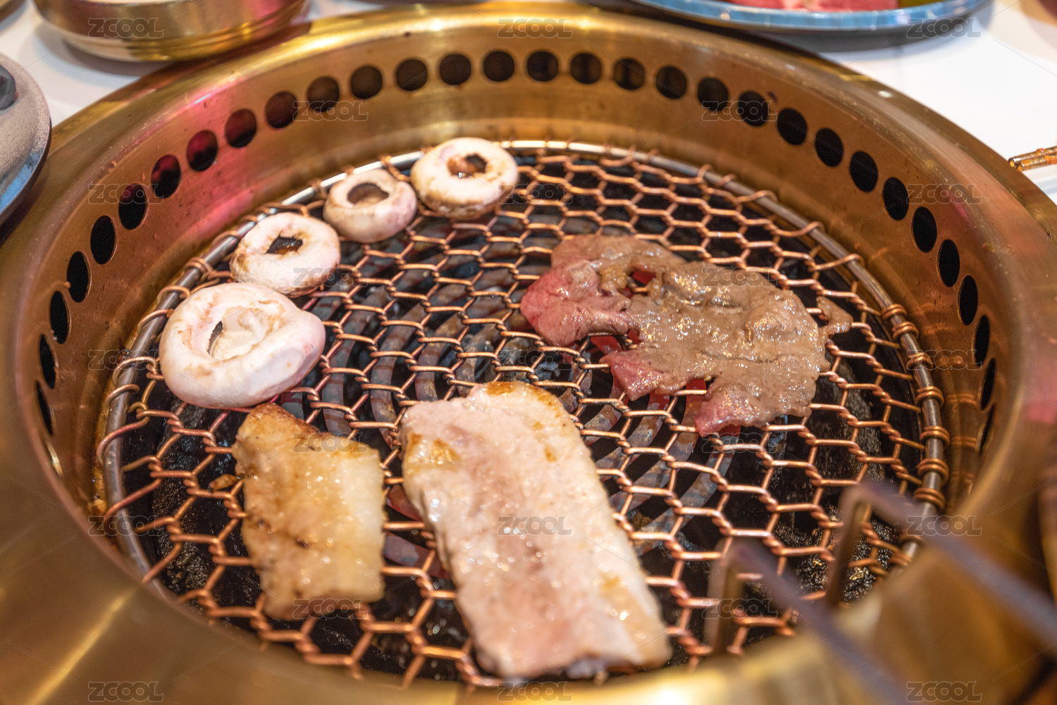 烤網(wǎng)上燒烤的的韓式烤肉