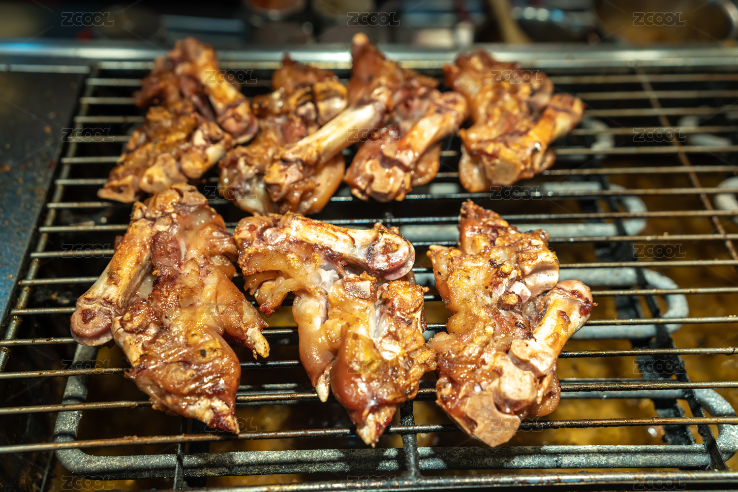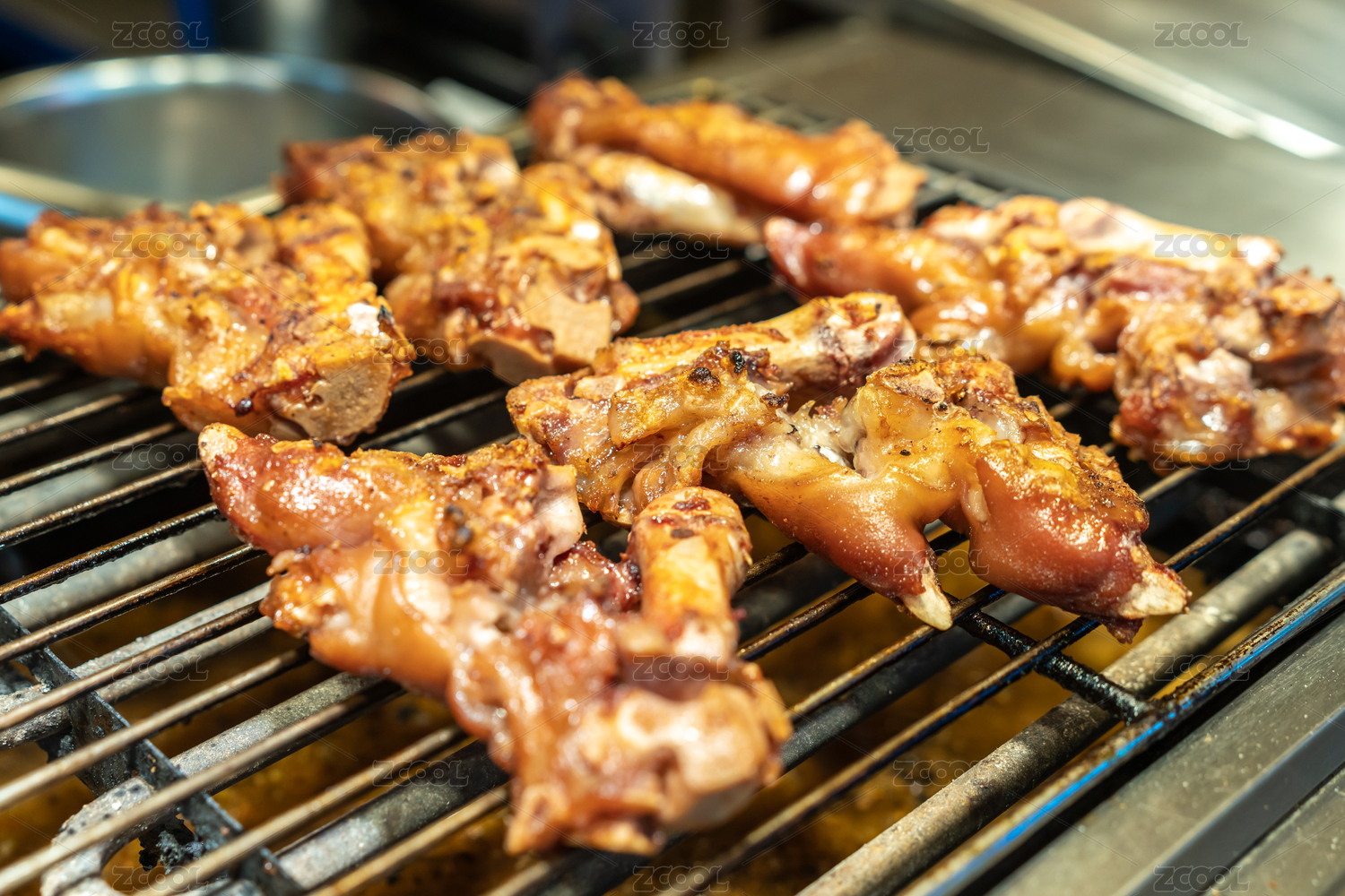 燒烤架烤豬蹄特寫