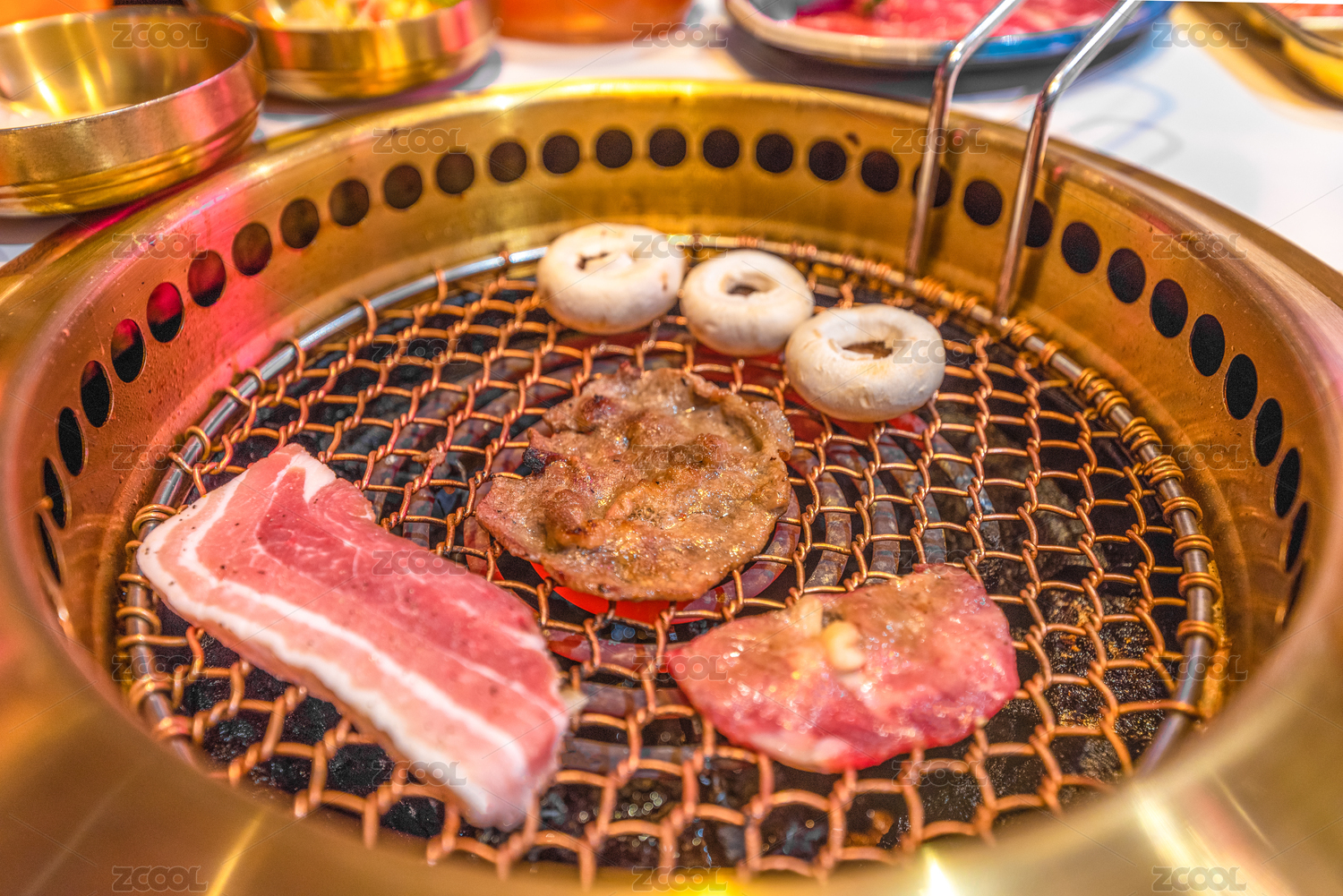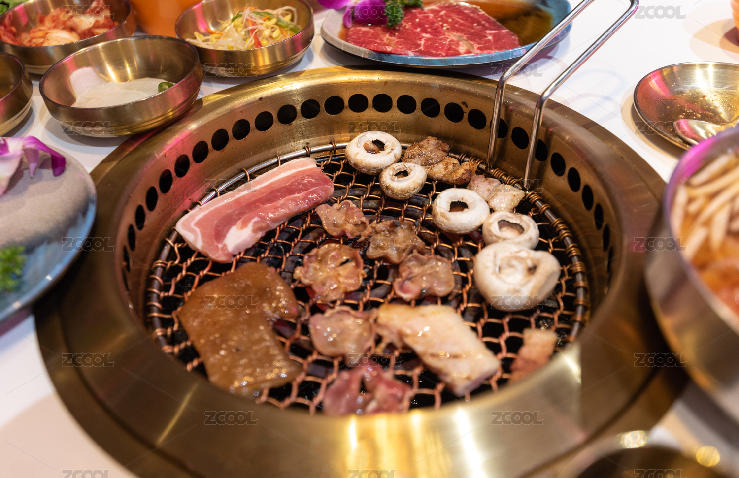 放滿烤肉的韓式烤肉燒烤架