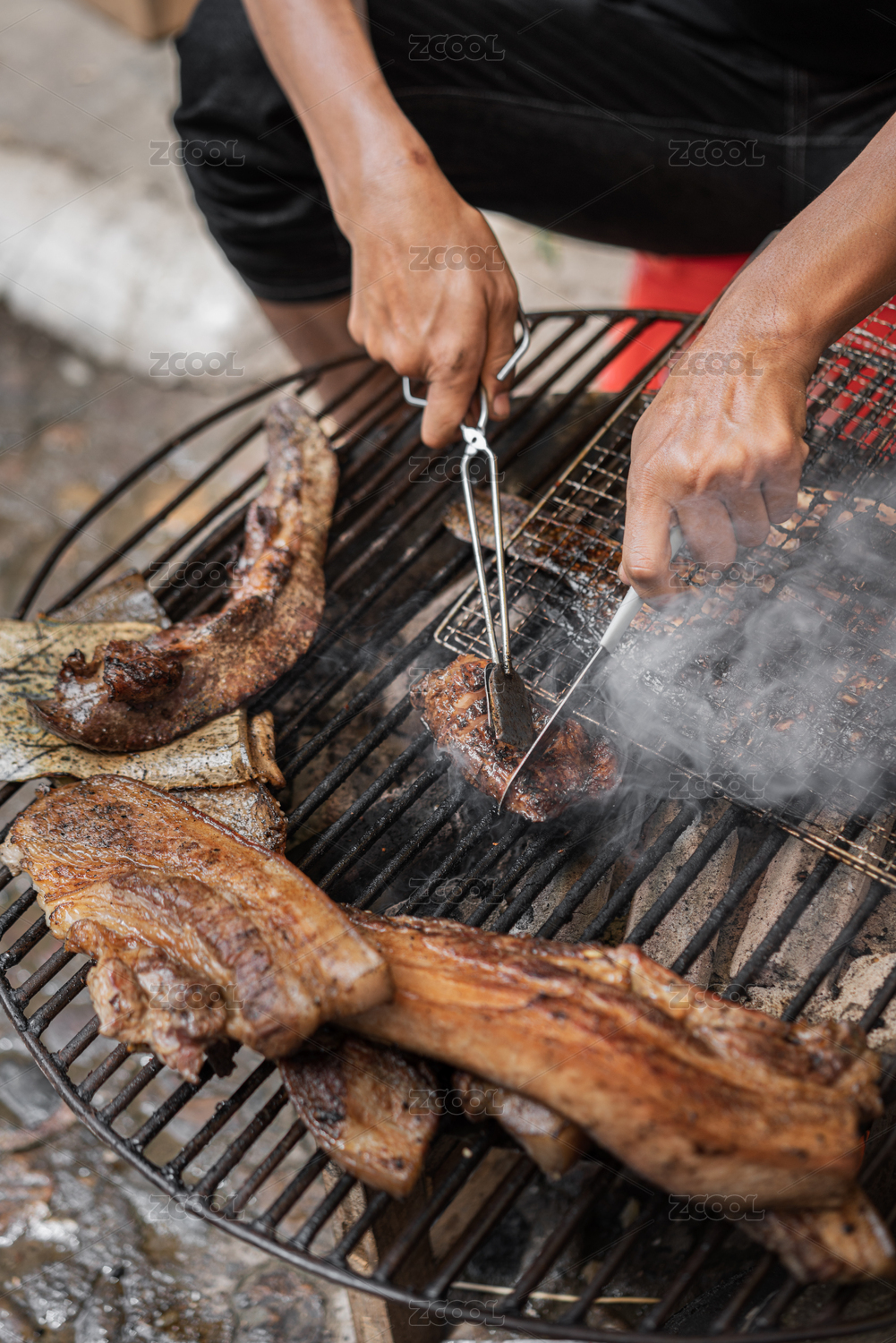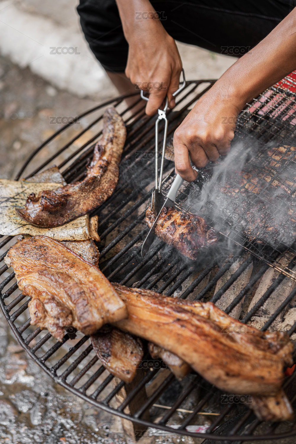 燒烤架上的肉特寫鏡頭