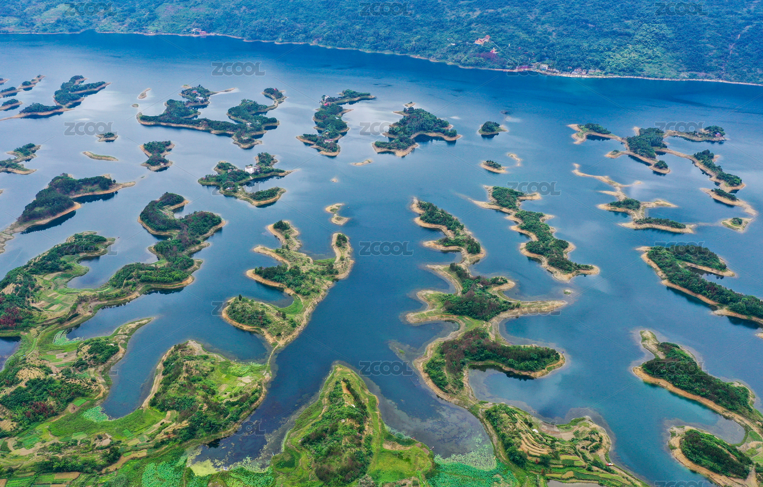 航拍湖北黃石王英水庫仙島湖風光,湖中千島