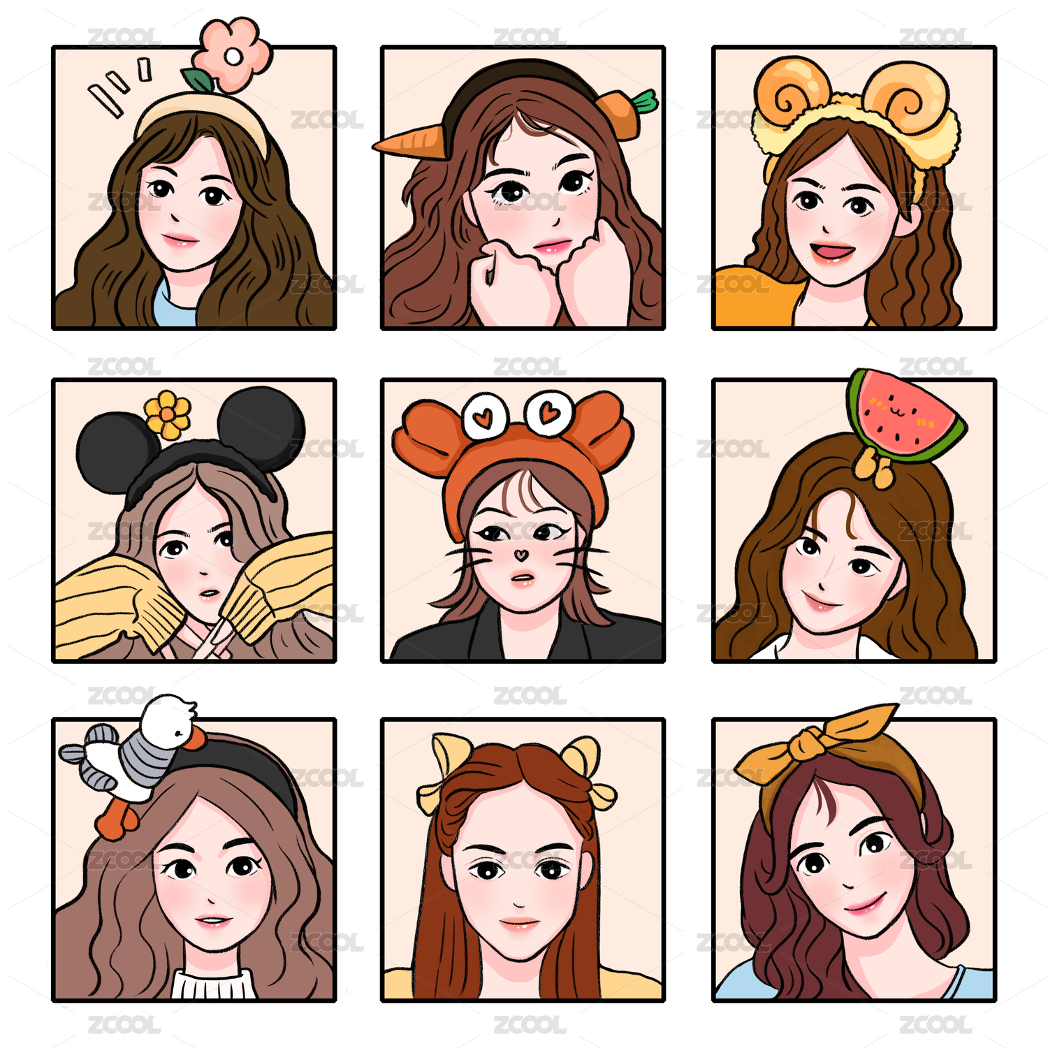 九宮格可愛美少女人物卡通頭像