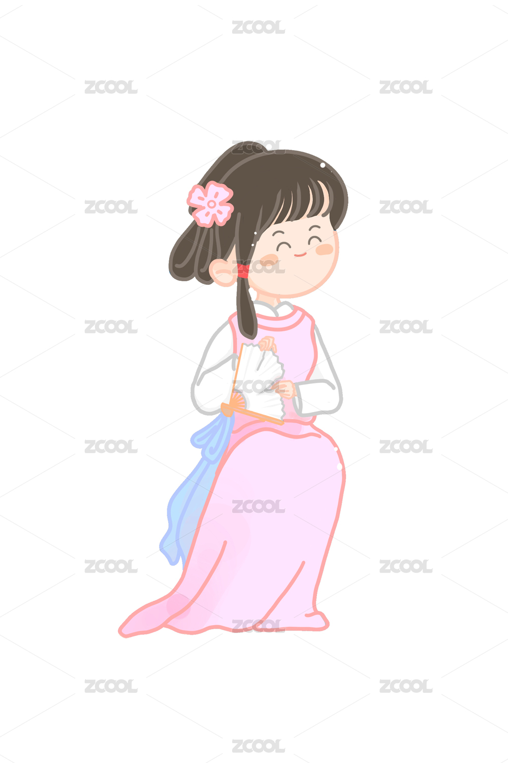 紅樓夢系列人物晴雯撕扇單個人物卡通插畫