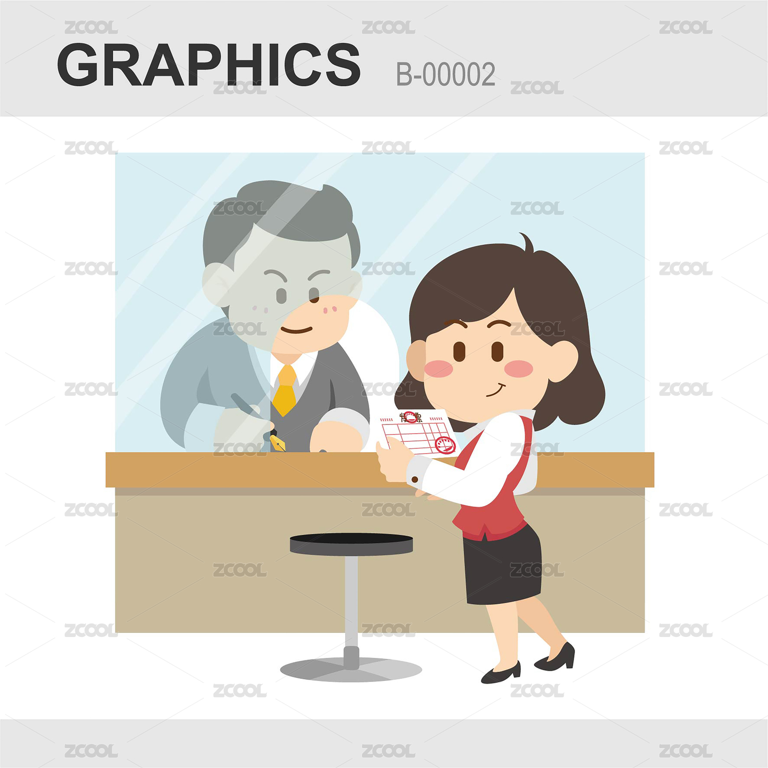 人物卡通插畫:開具發(fā)票服務(wù)柜臺辦理業(yè)務(wù)卡通插畫2