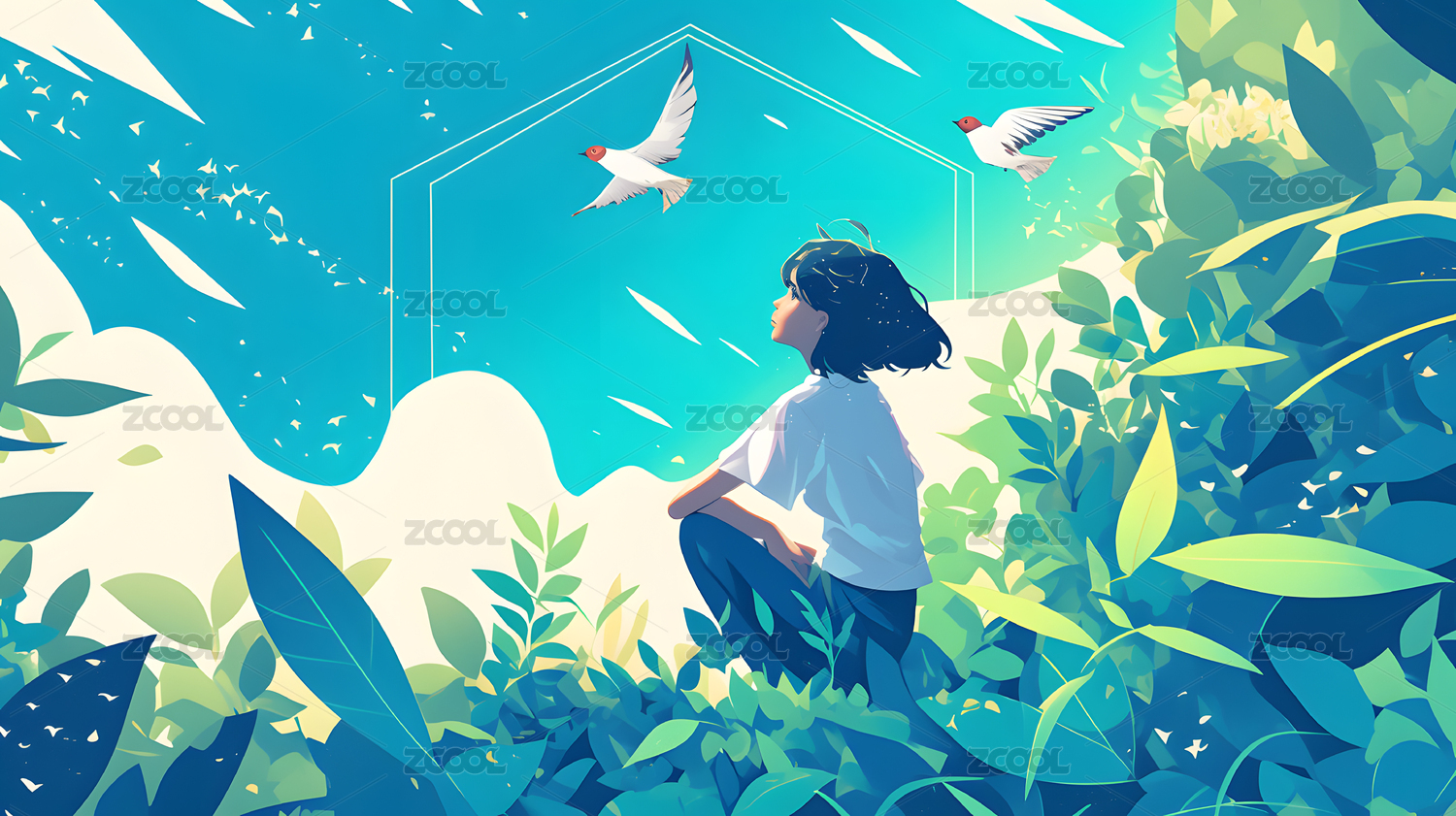新海誠風(fēng)格人物卡通日漫男孩和寵物狗