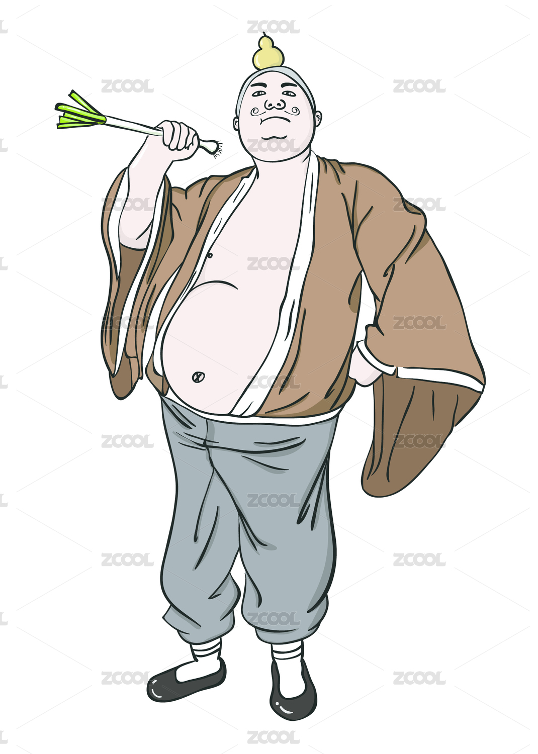 拿著蔥的胖和尚人物卡通插畫