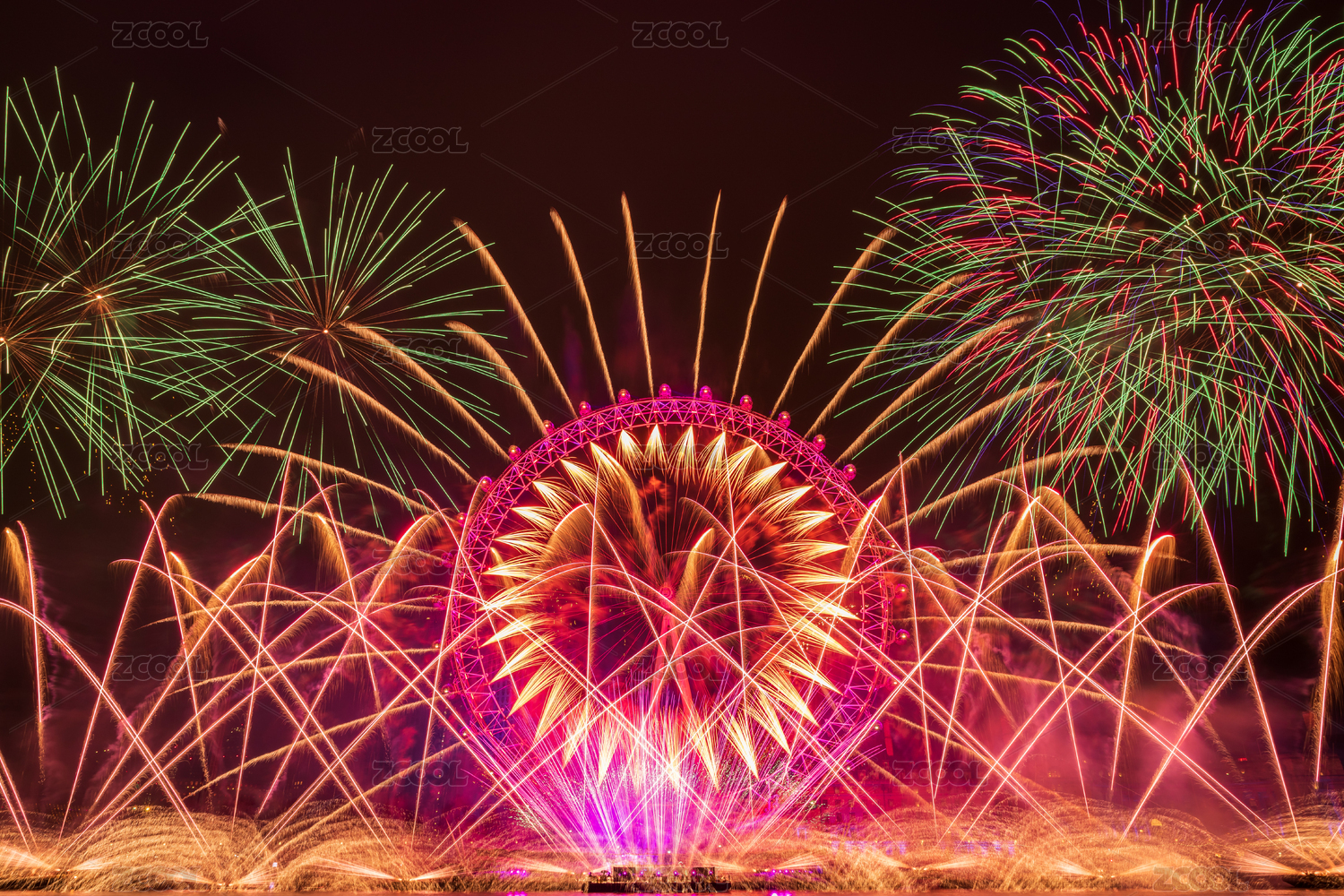 英國(guó)倫敦在泰晤士河畔的倫敦眼摩天輪舉行一年一度的元旦傳統(tǒng)跨年煙花表演