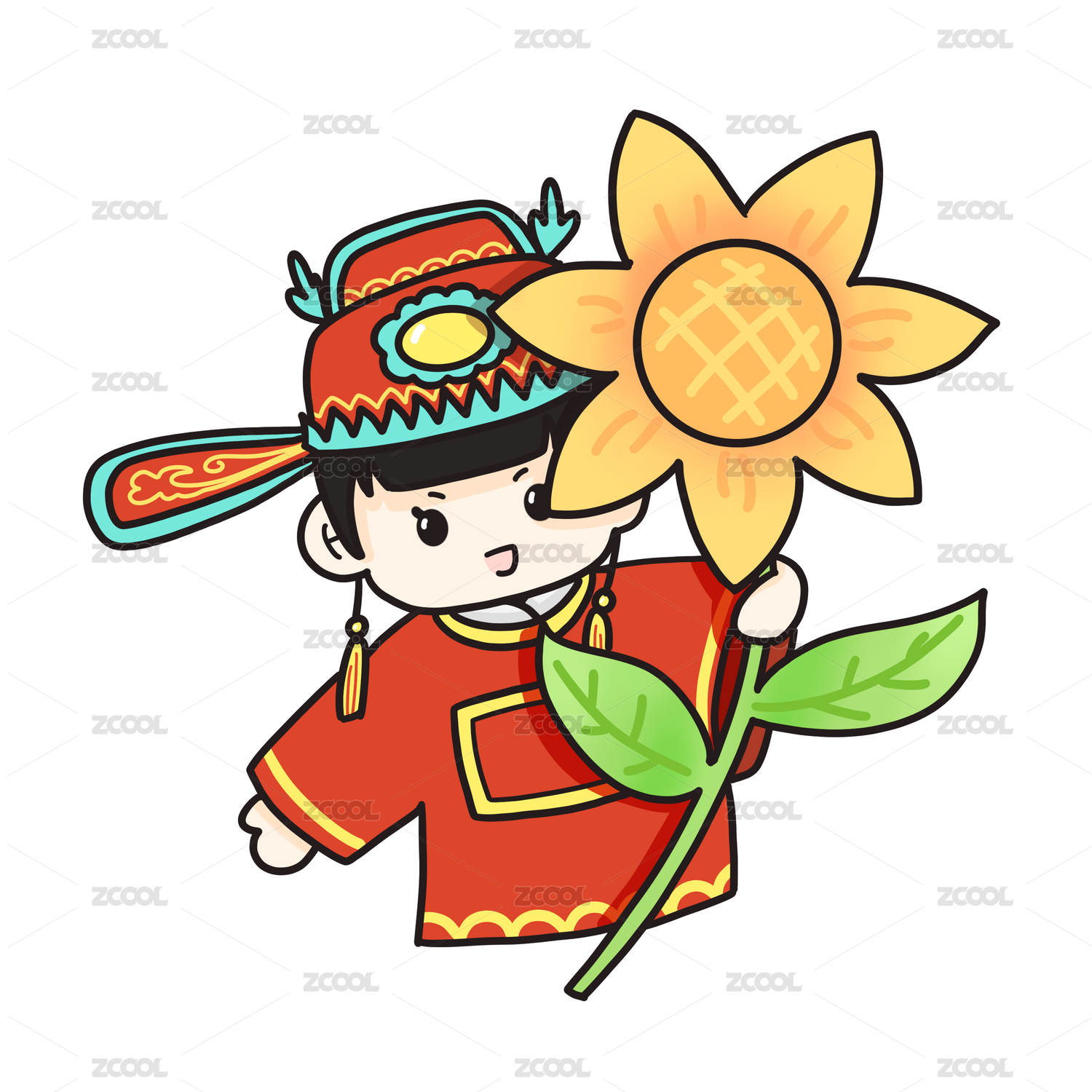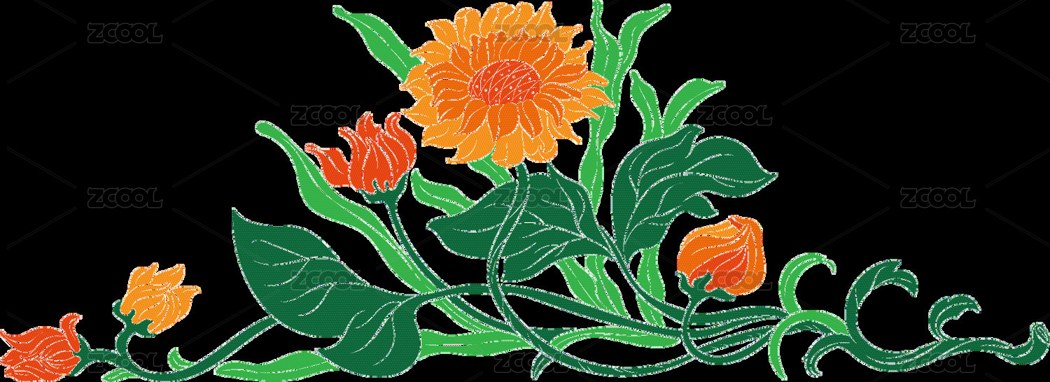 向日葵 太陽花 藤曼花卉手繪矢量圖