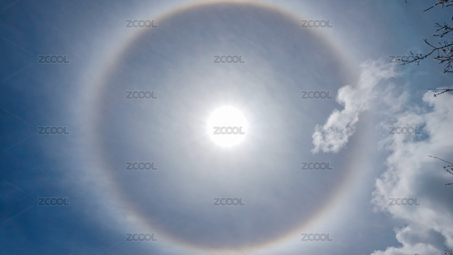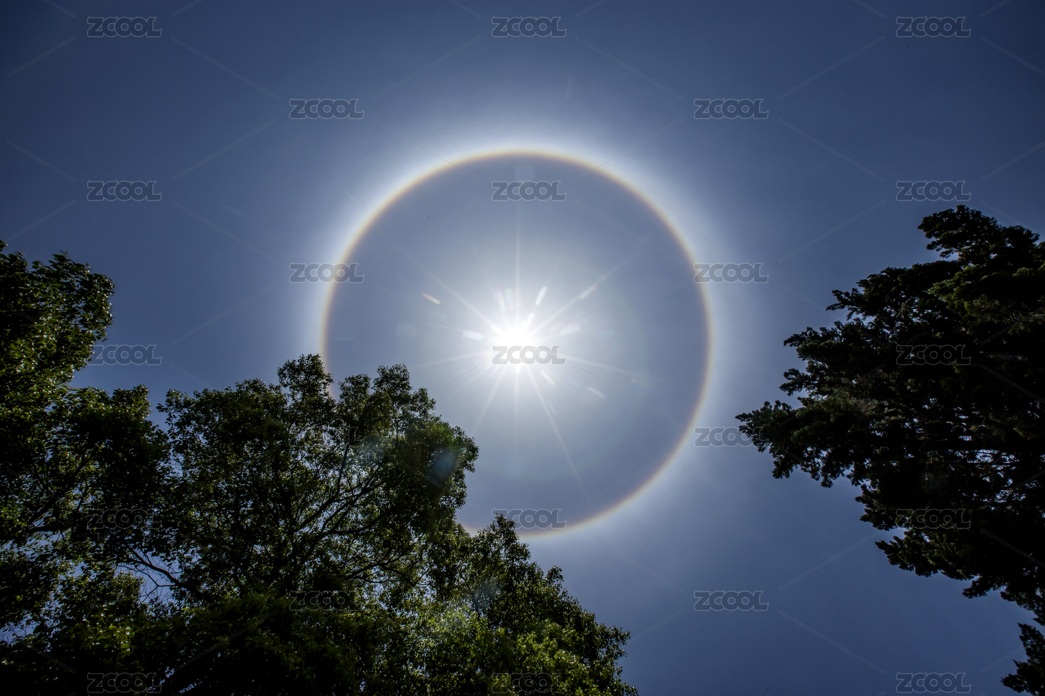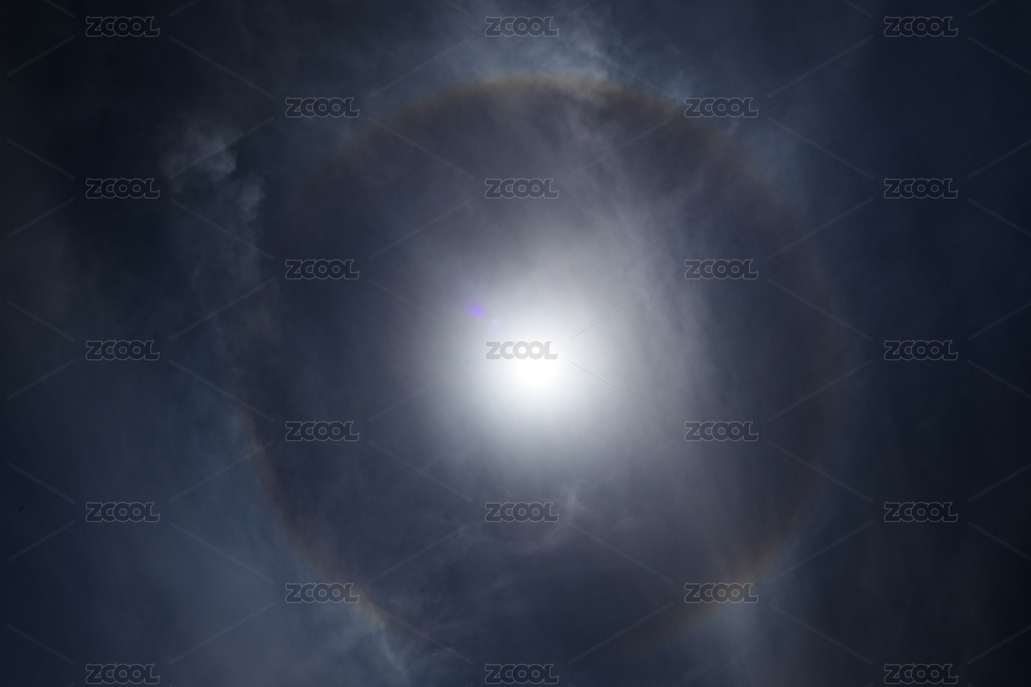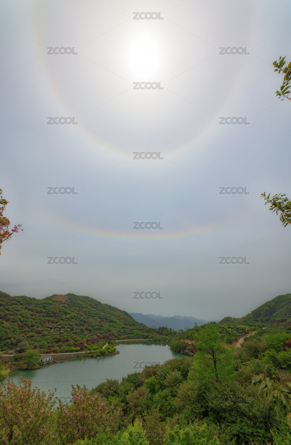 群山間天空出現(xiàn)日暈現(xiàn)象的自然風(fēng)光