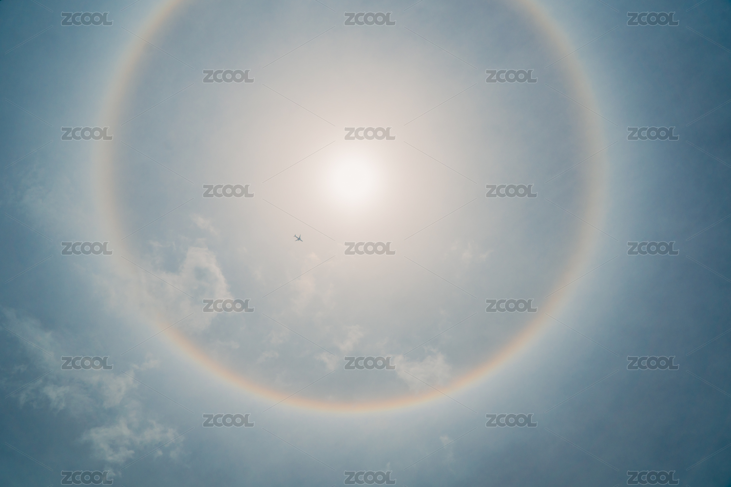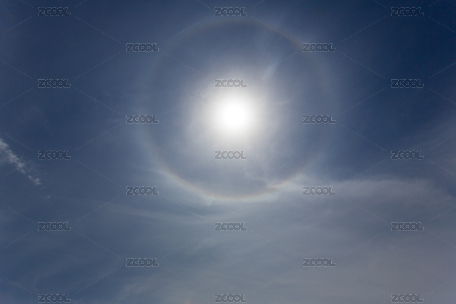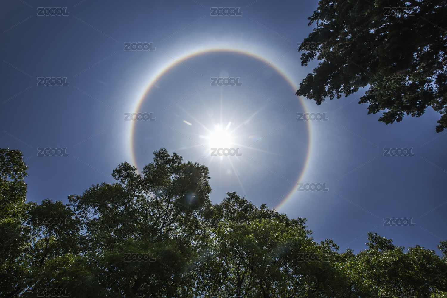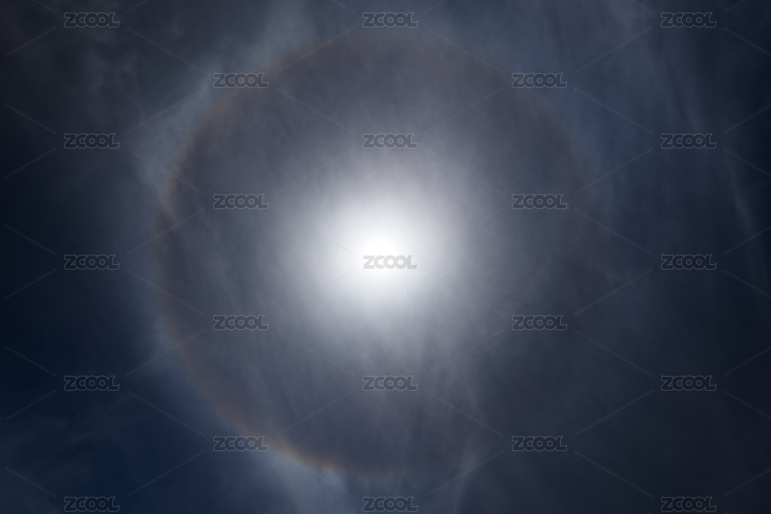 群山間天空出現(xiàn)日暈現(xiàn)象的自然風(fēng)光