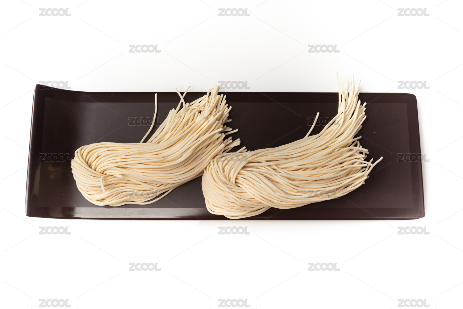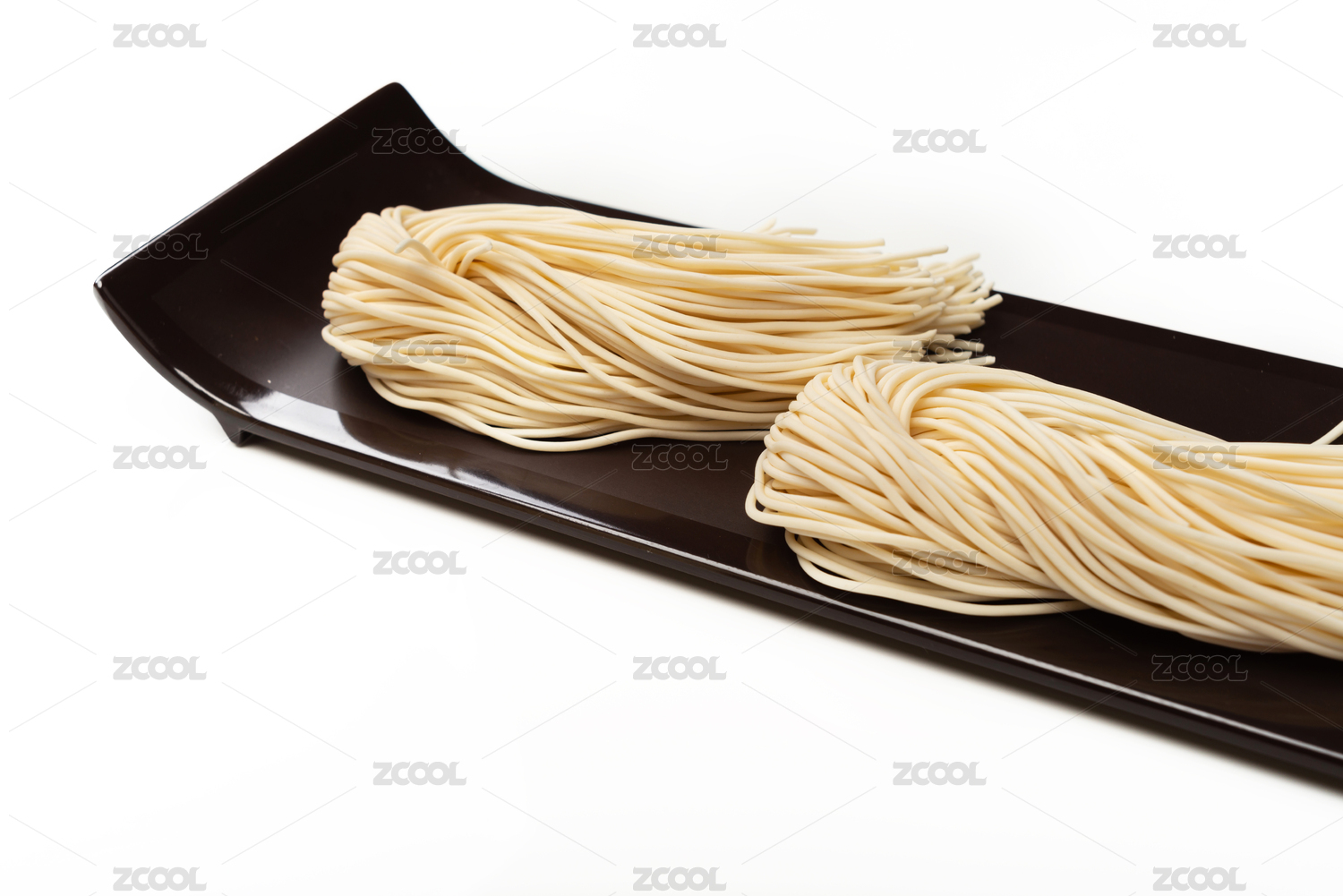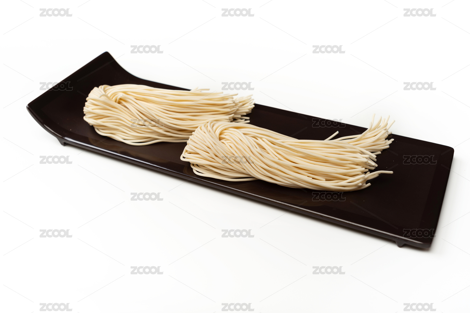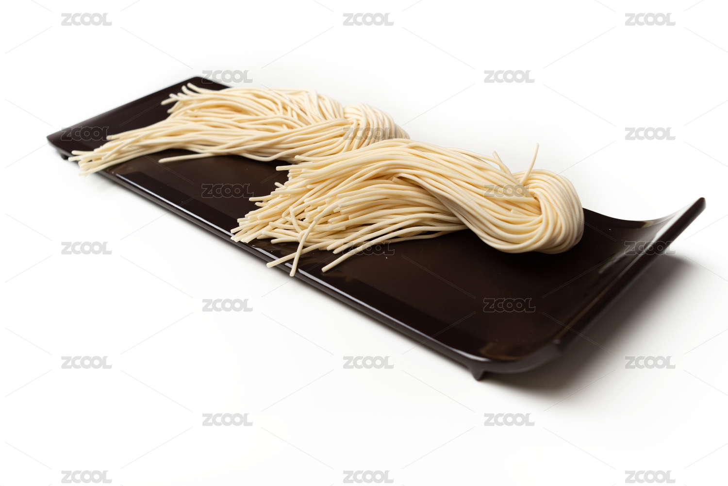 白色背景下放在盤子中的面條