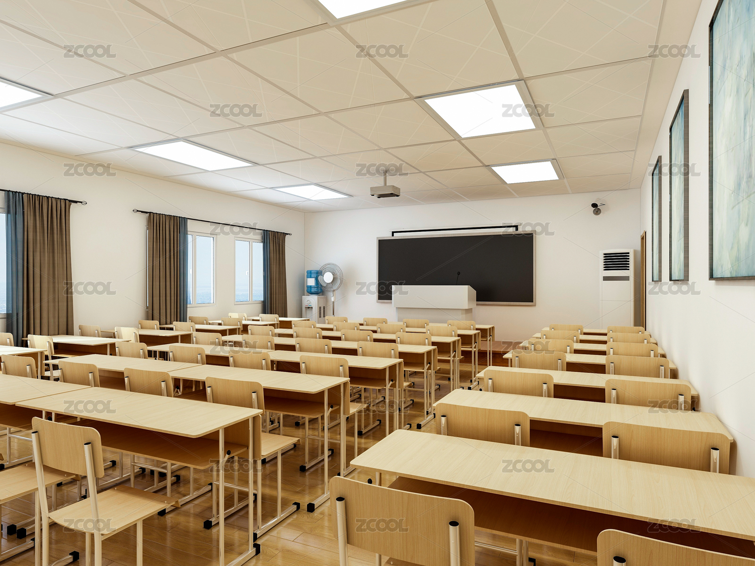 室內(nèi)設(shè)計3D渲染,干凈明亮的現(xiàn)代化教室