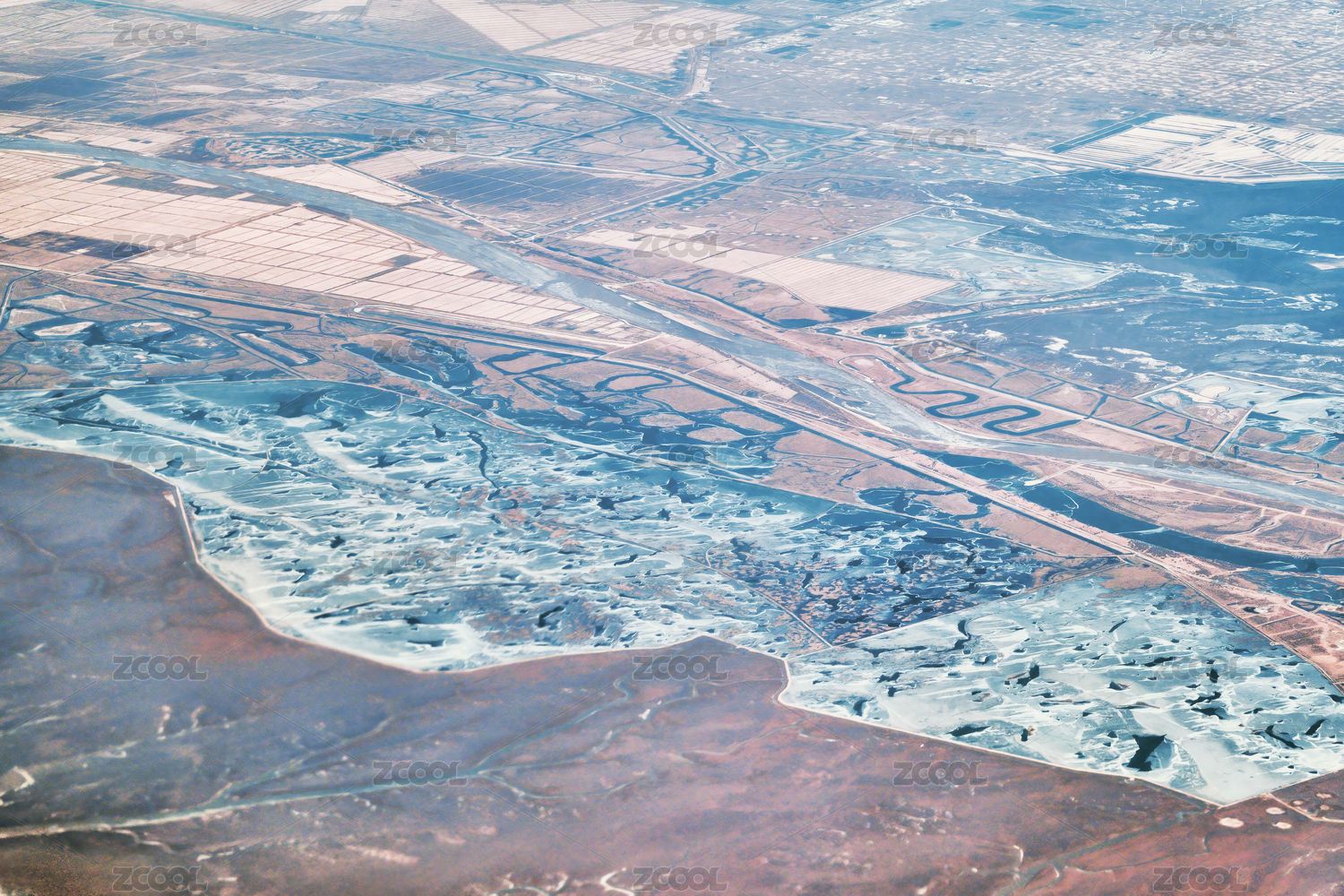 冬季的東營(yíng)黃河入海口航拍