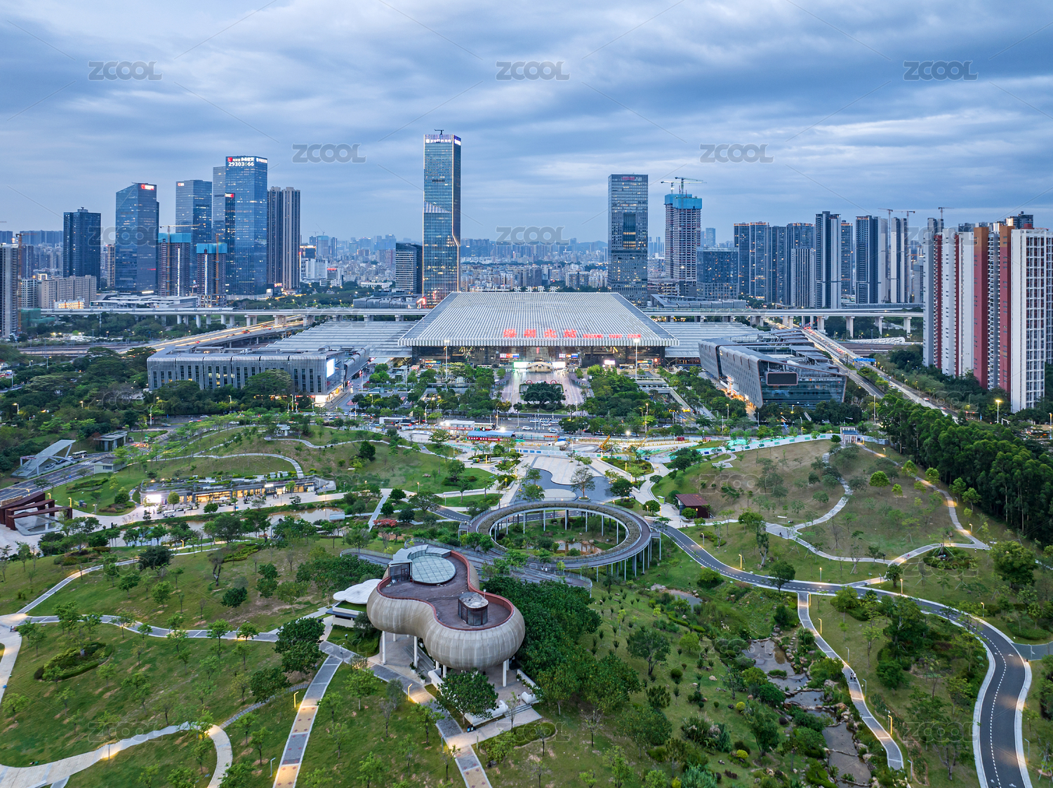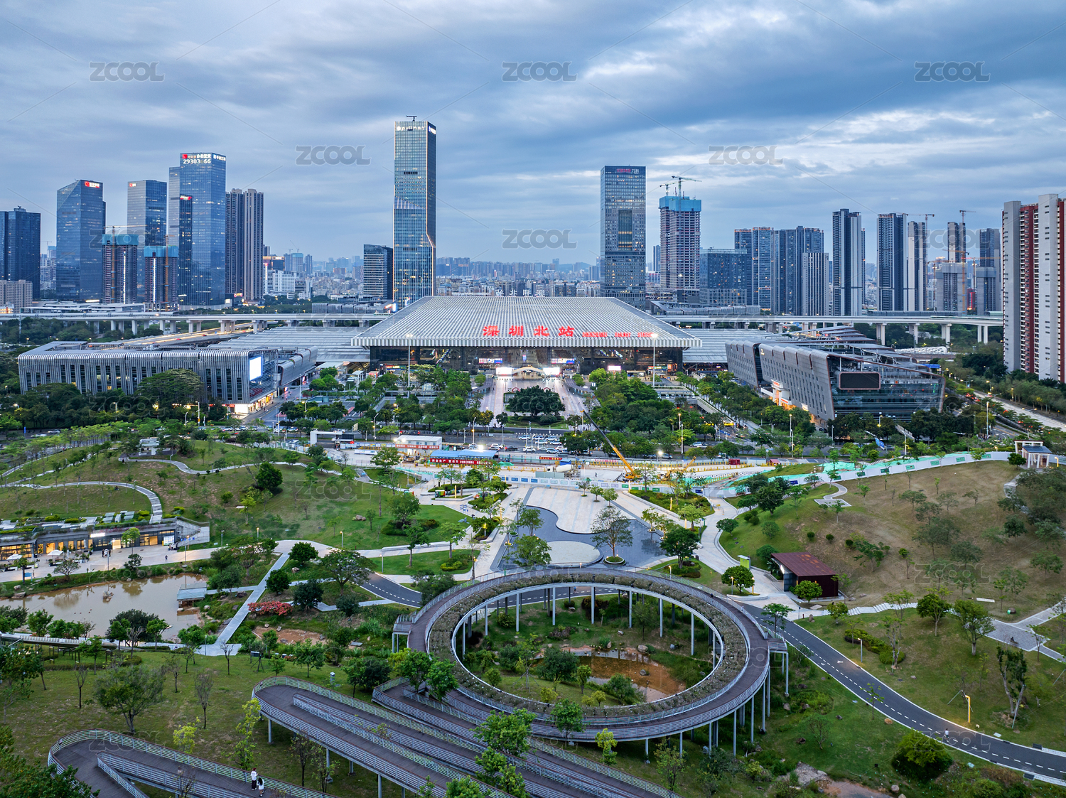 深圳市龍華區(qū)深圳北站中心公園航拍