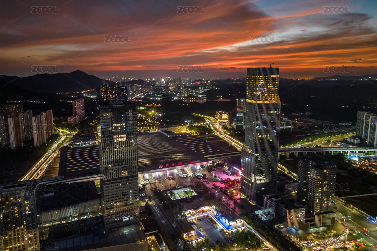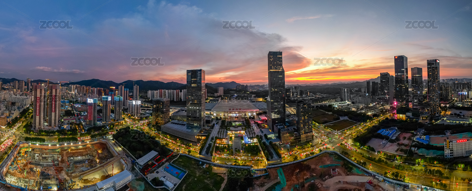 深圳市龍華區(qū)深圳北站晚霞和夜景