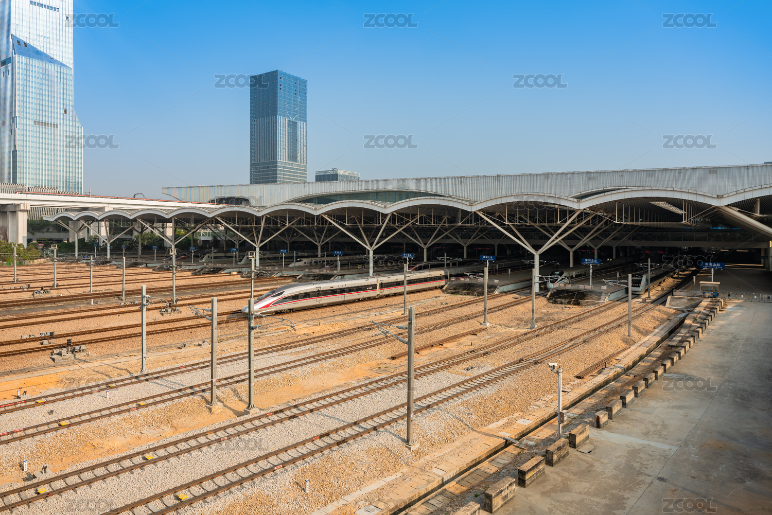 中國(guó)廣東省深圳北站車站月臺(tái)和軌道