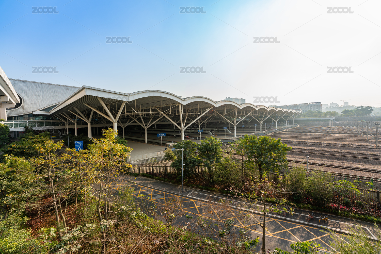 藍(lán)天白云下深圳北站全景圖