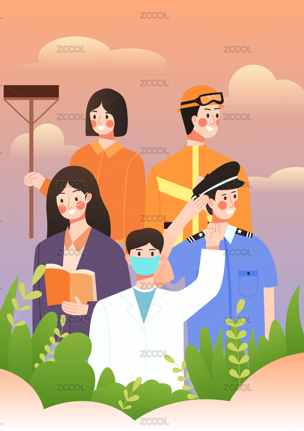 勞動節(jié)不同職業(yè)人物插畫