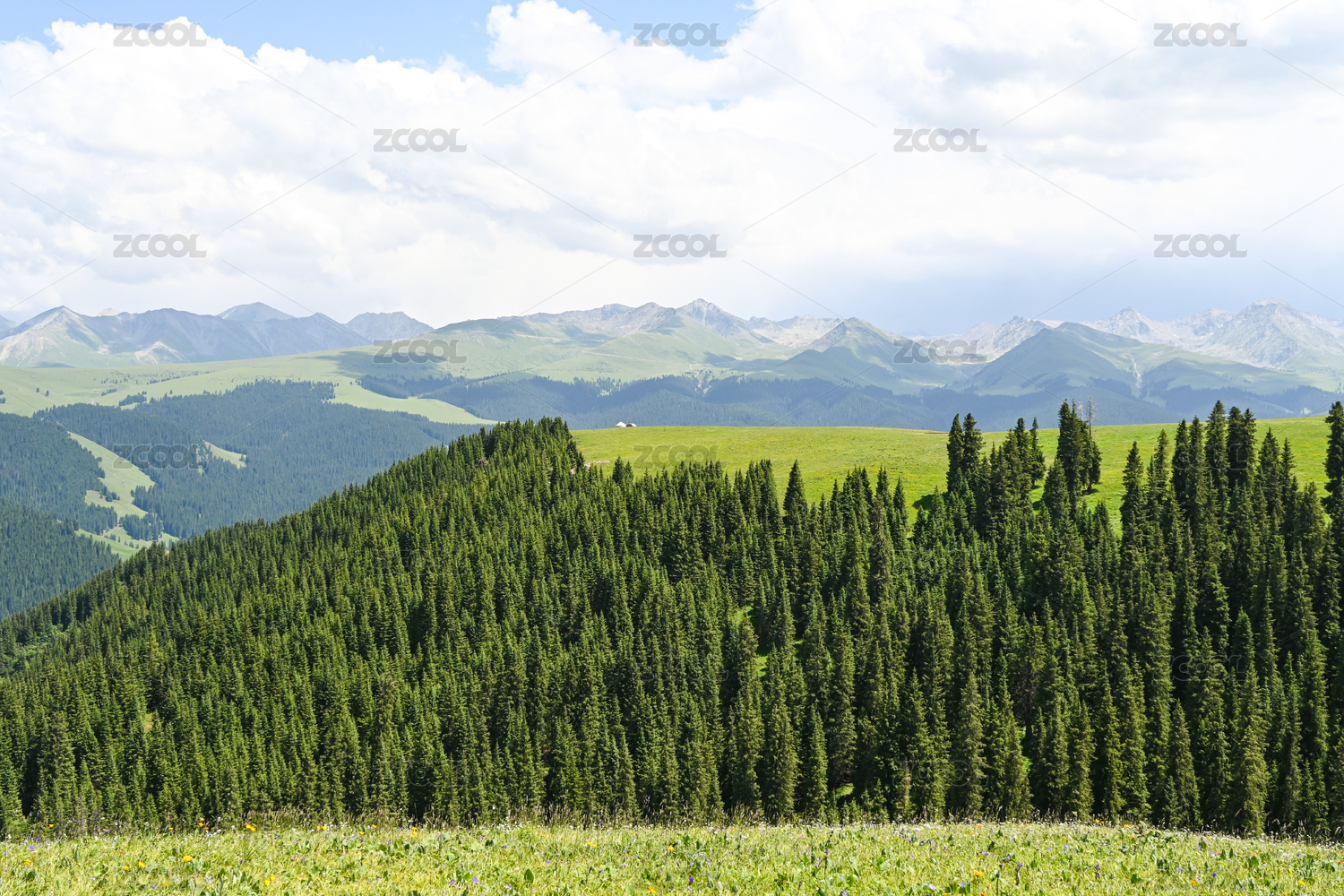 中國(guó)新疆喀拉峻草原高山森林草原花海風(fēng)光