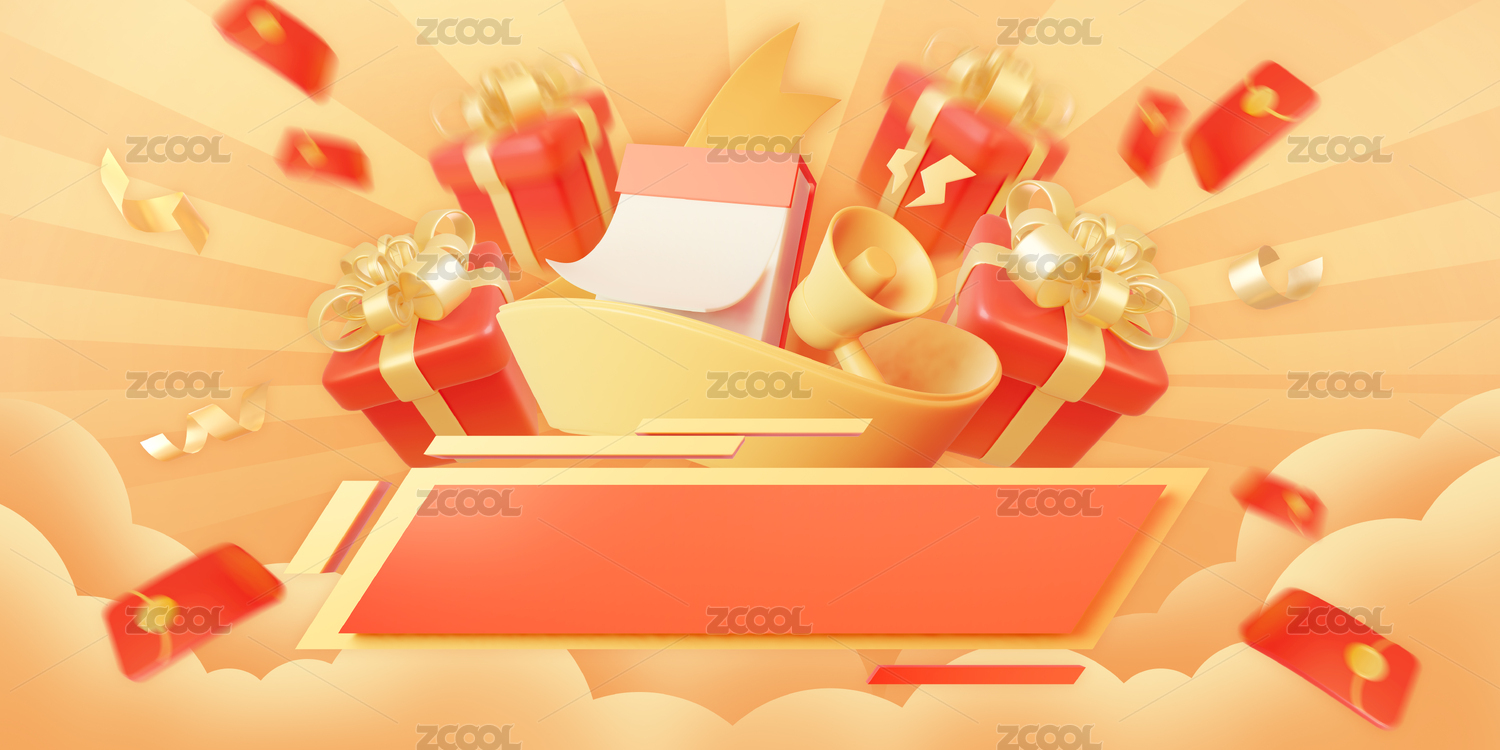 3d紅金色新年節(jié)日禮盒促銷活動海報插畫