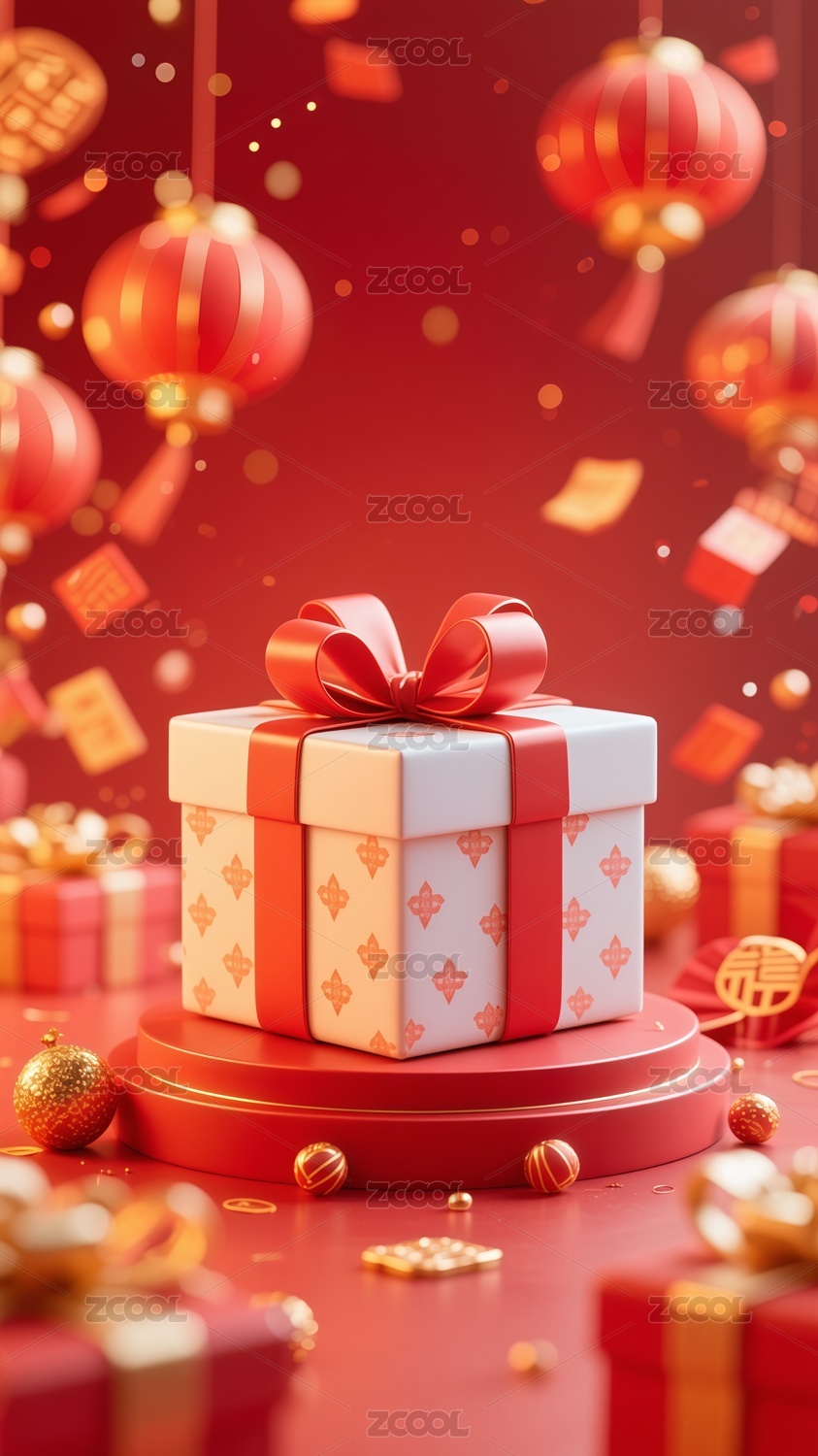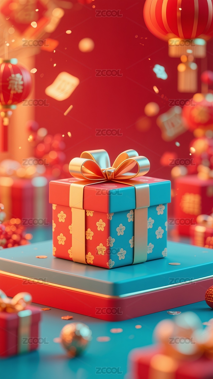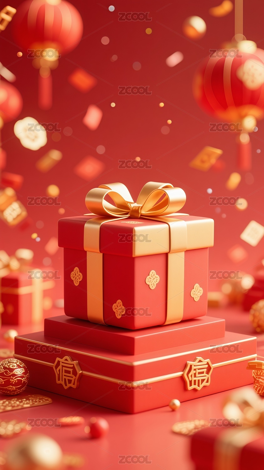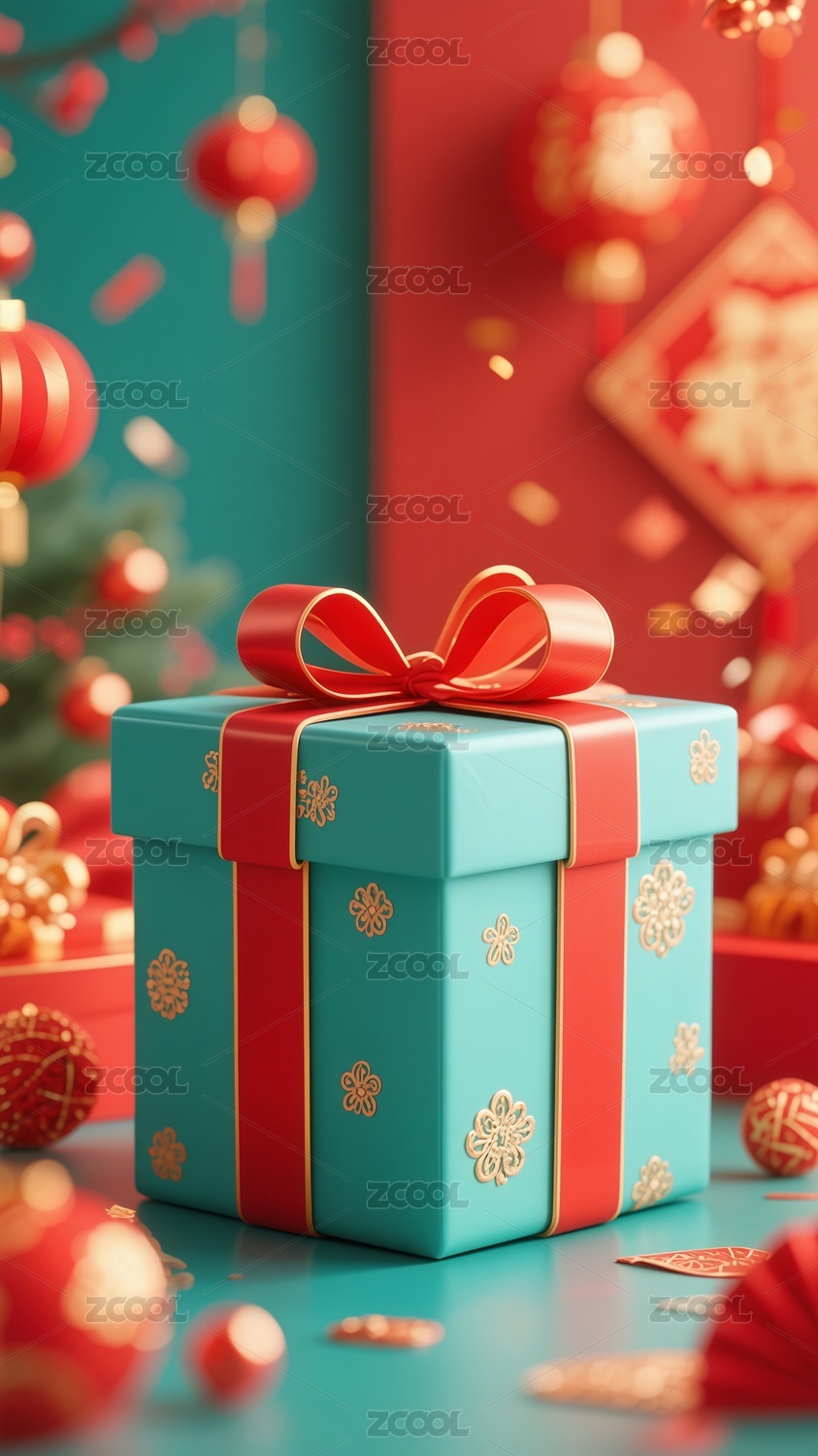 3D國潮風節(jié)日禮盒插畫