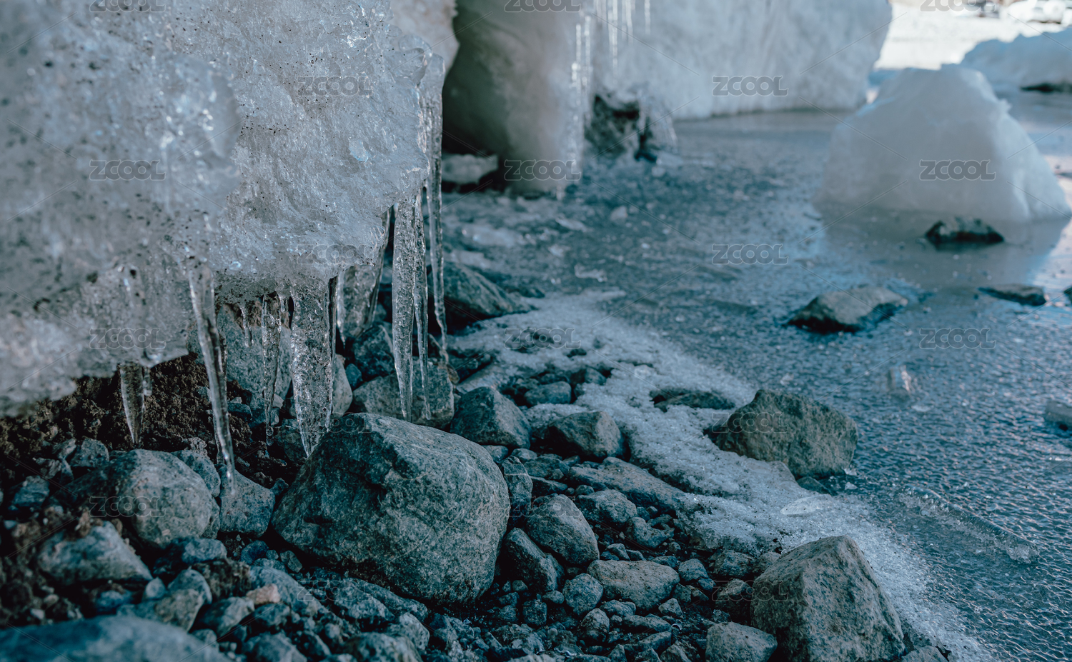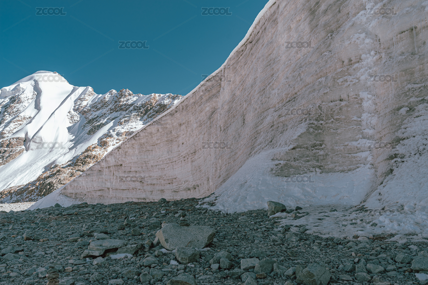 中國(guó)西藏當(dāng)雄廓瓊崗日冰川的雪山和冰掛
